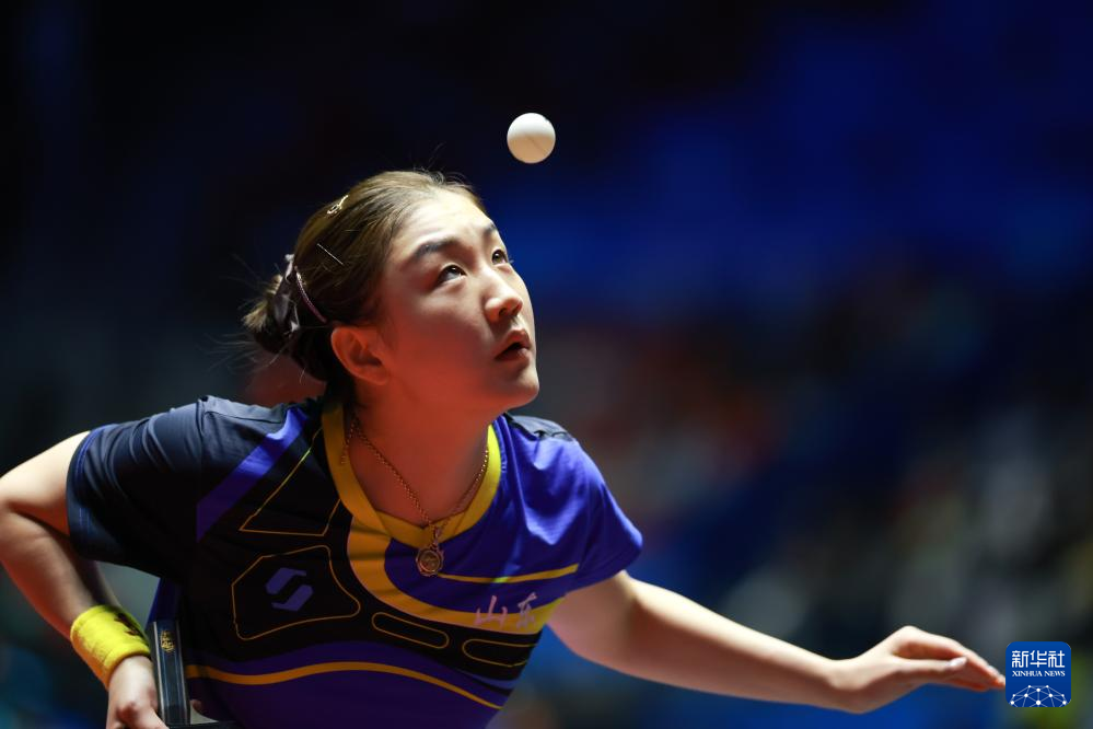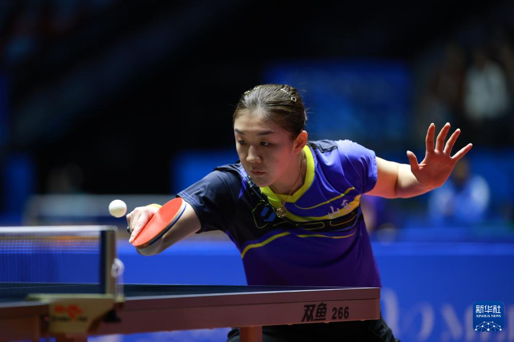 11月12日,山东队选手陈梦在比赛中回球。