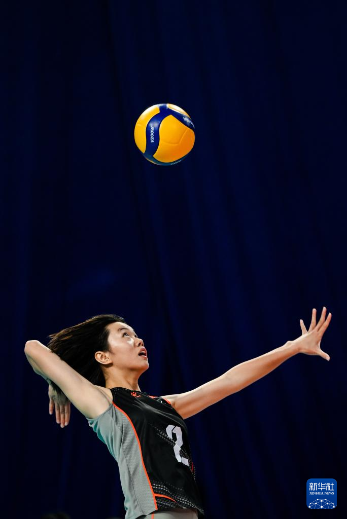 11月13日,河北队选手霍欣怡在比赛中发球。