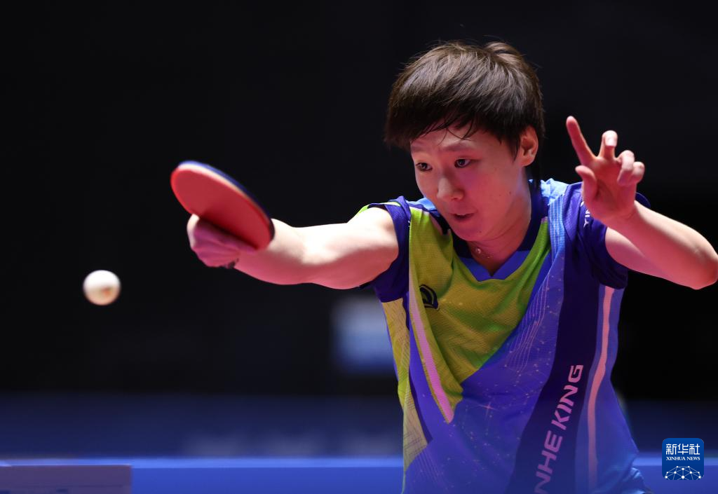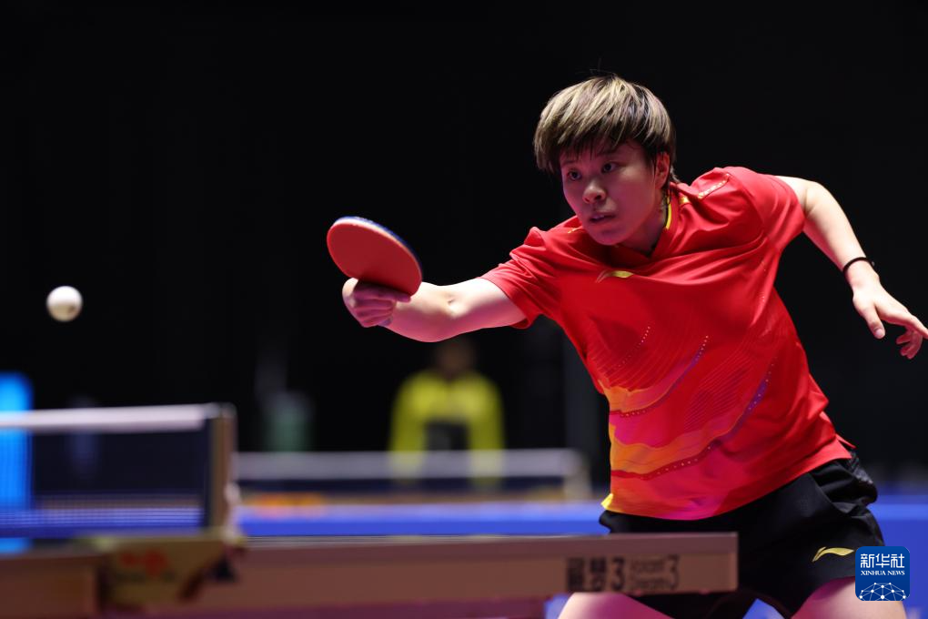 11月13日,黑龙江队选手王曼昱在比赛中回球。