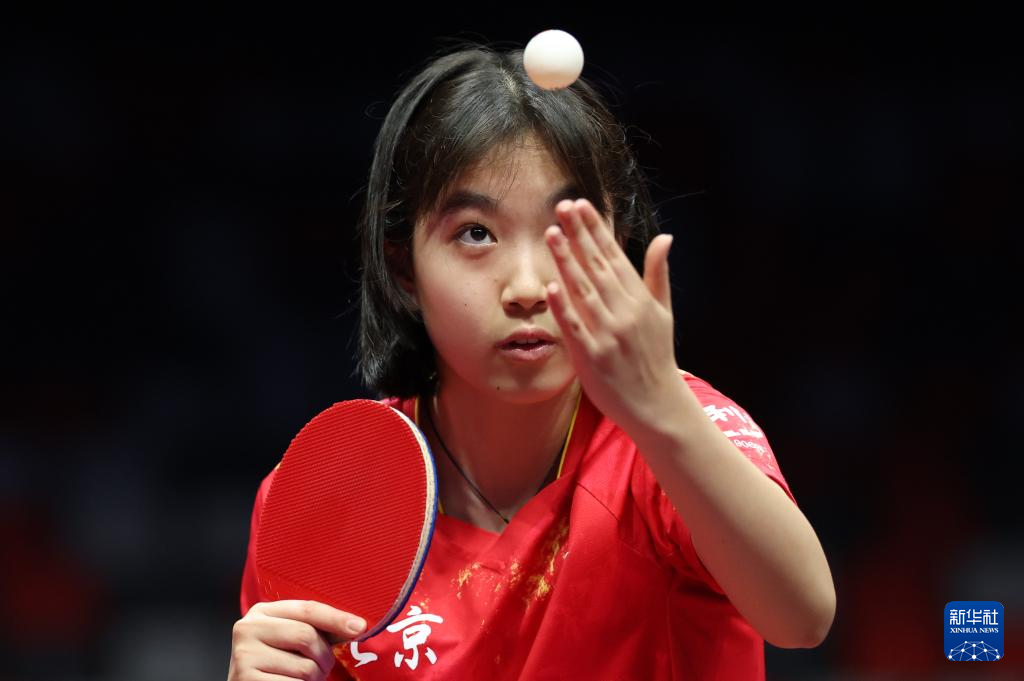 当日,在澳门举行的第十五届全国运动会乒乓球女子18岁以下团体金牌赛中,北京队对阵山东队。