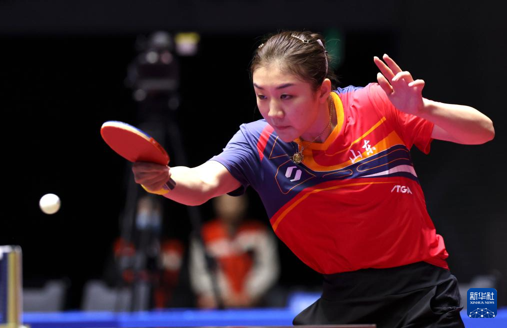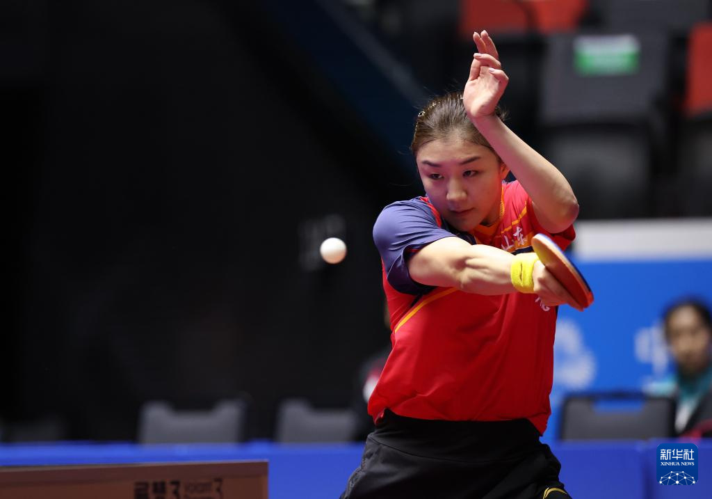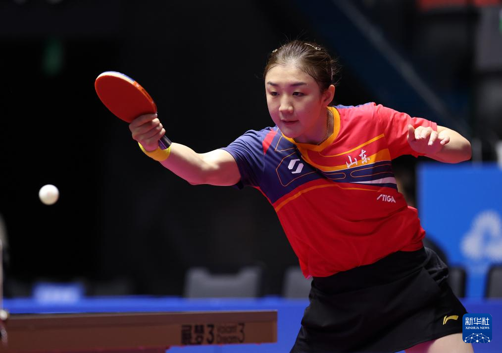 11月13日,山东队选手陈梦在比赛中回球。