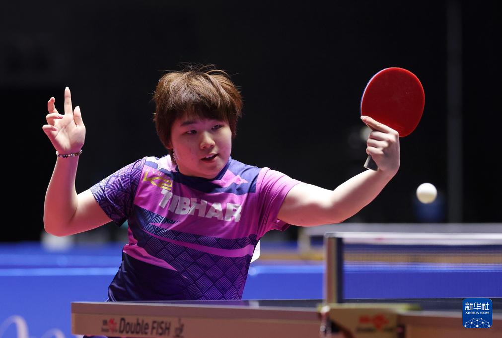 11月13日,江苏队选手蒯曼在比赛中回球。