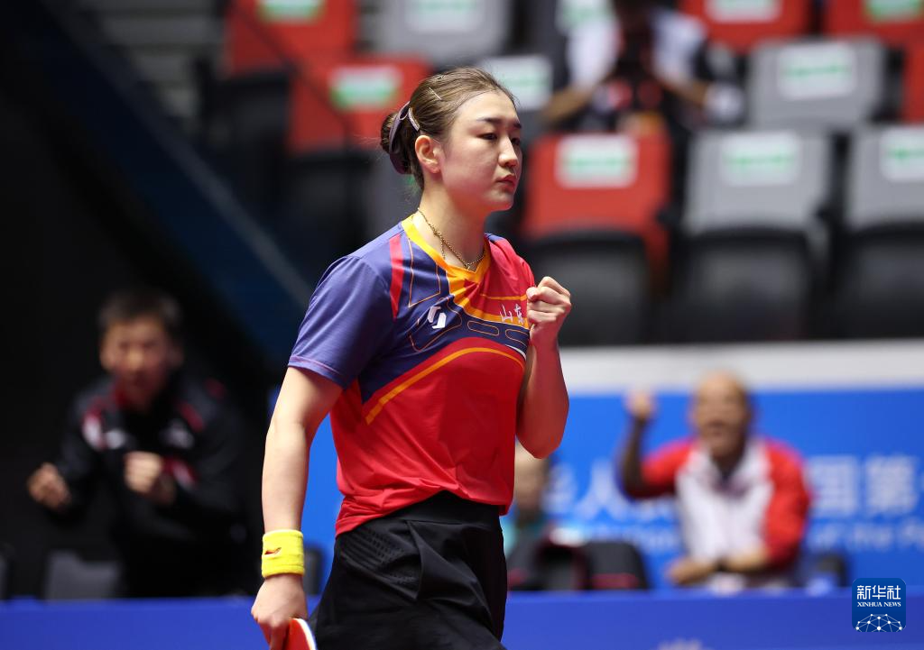 当日,在澳门举行的第十五届全国运动会乒乓球女子单打四分之一决赛中,山东队选手陈梦4比2战胜江苏队选手蒯曼,晋级四强。