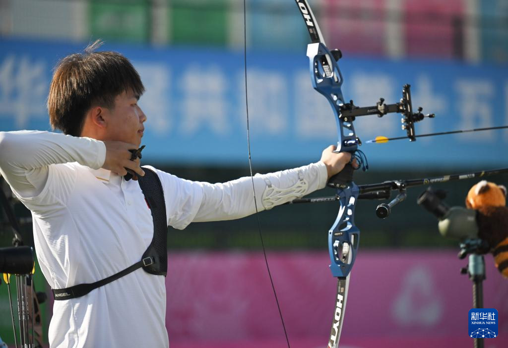 当日,第十五届全国运动会射箭项目男子反曲弓个人排名赛在深圳举行。