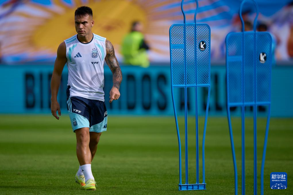 11月13日,阿根廷队球员劳塔罗·马丁内斯在训练中。