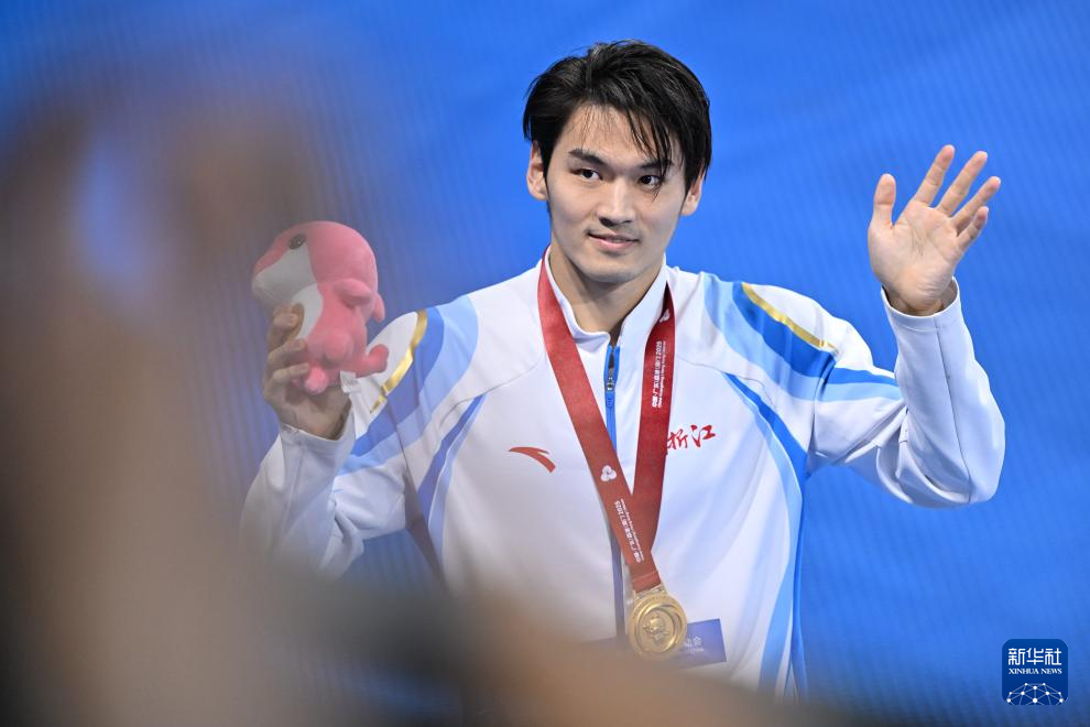 11月15日,冠军浙江队选手徐嘉余在颁奖仪式上。