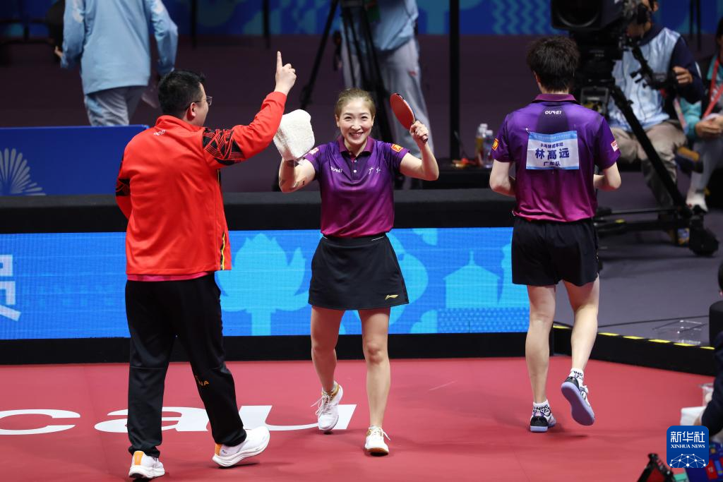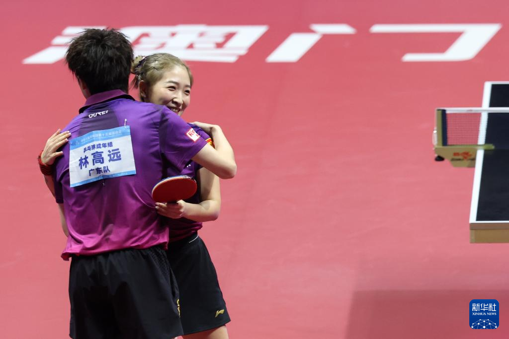 当日,在澳门进行的第十五届全国运动会乒乓球混合双打金牌赛中,广东队组合林高远/刘诗雯4比2战胜江苏队组合陈垣宇/蒯曼,夺得冠军。