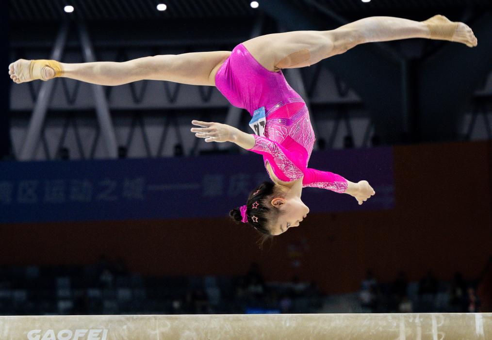 11月15日,广东队选手柯沁沁在平衡木比赛中。新华社记者 杜子璇 摄