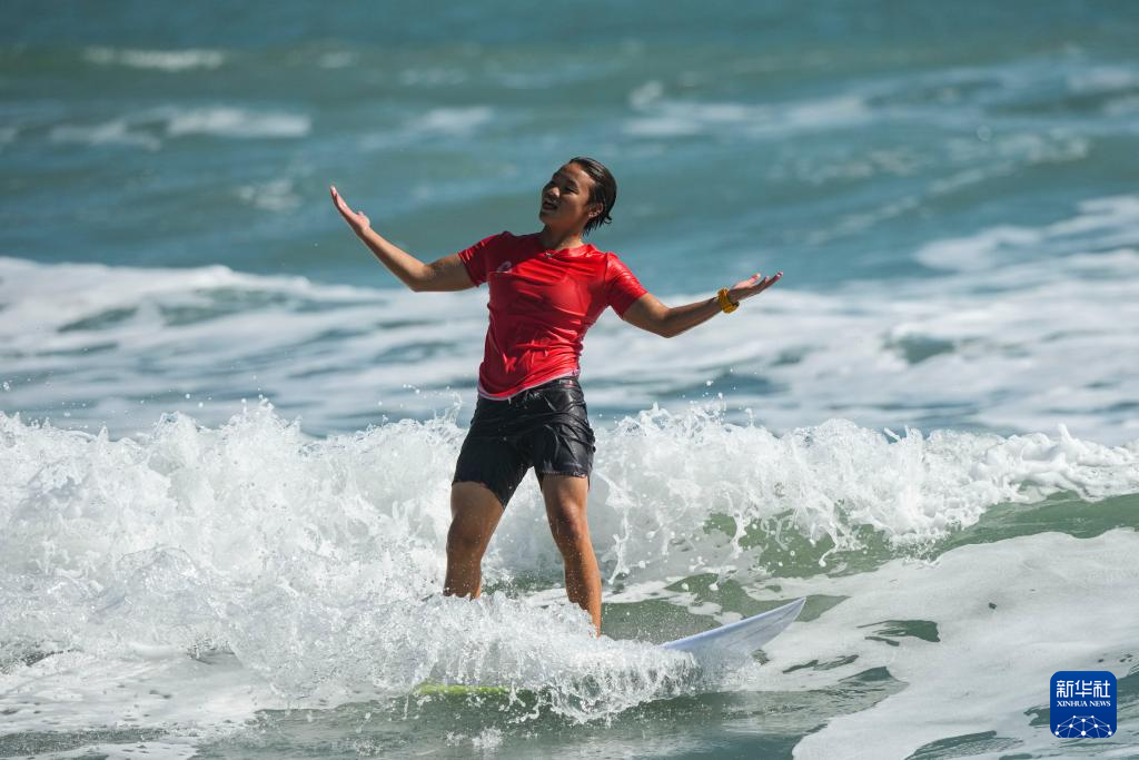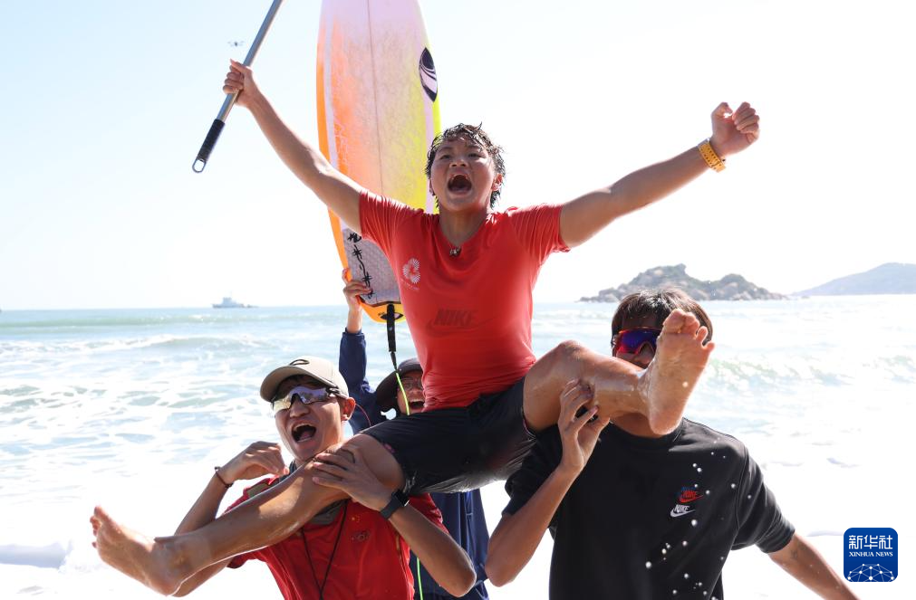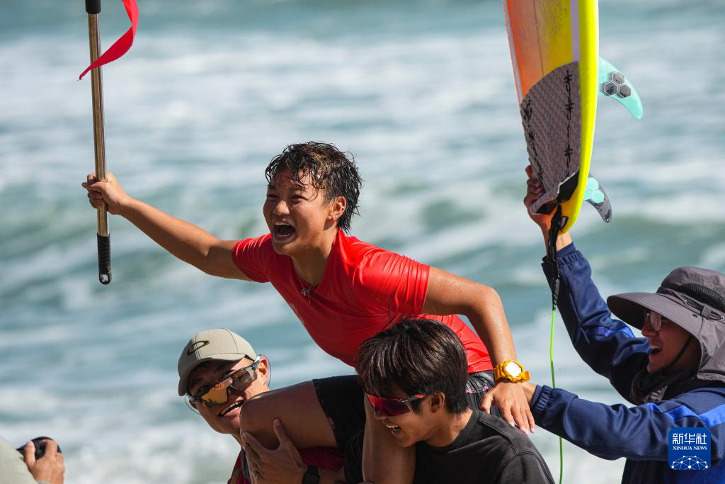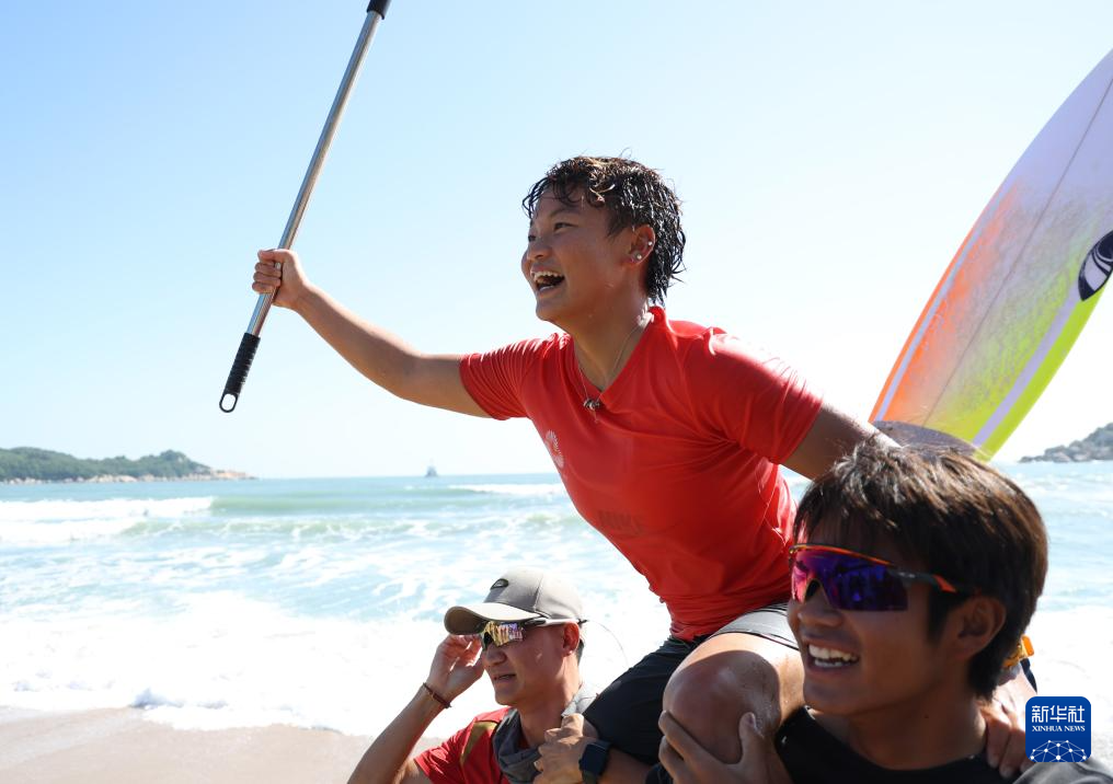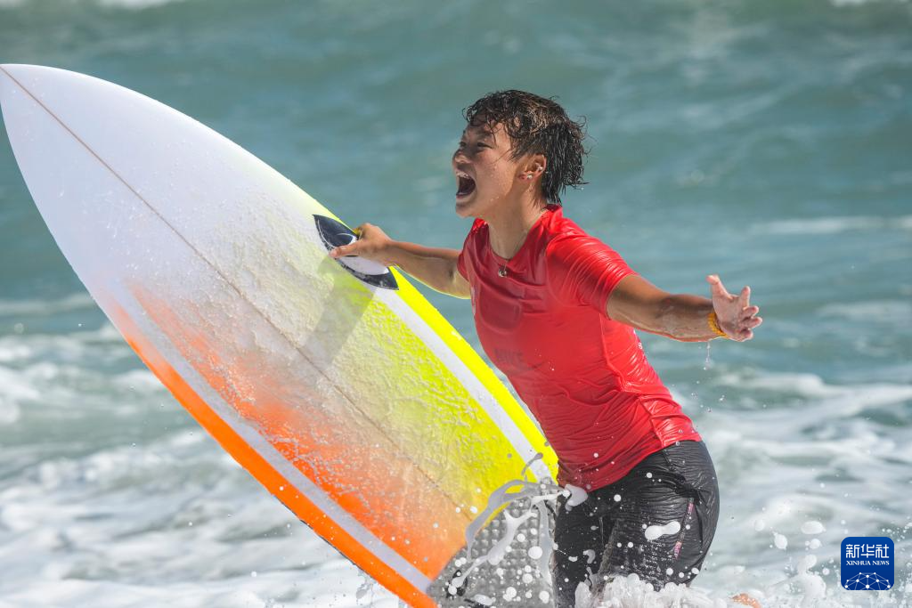 当日,在广东南澳举行的第十五届全国运动会冲浪女子短板决赛中,四川队选手杨思琪战胜辽宁队选手金姝含,夺得冠军。