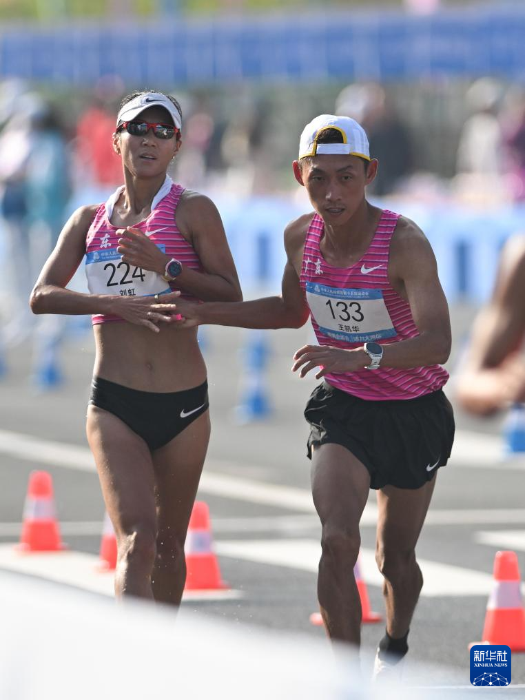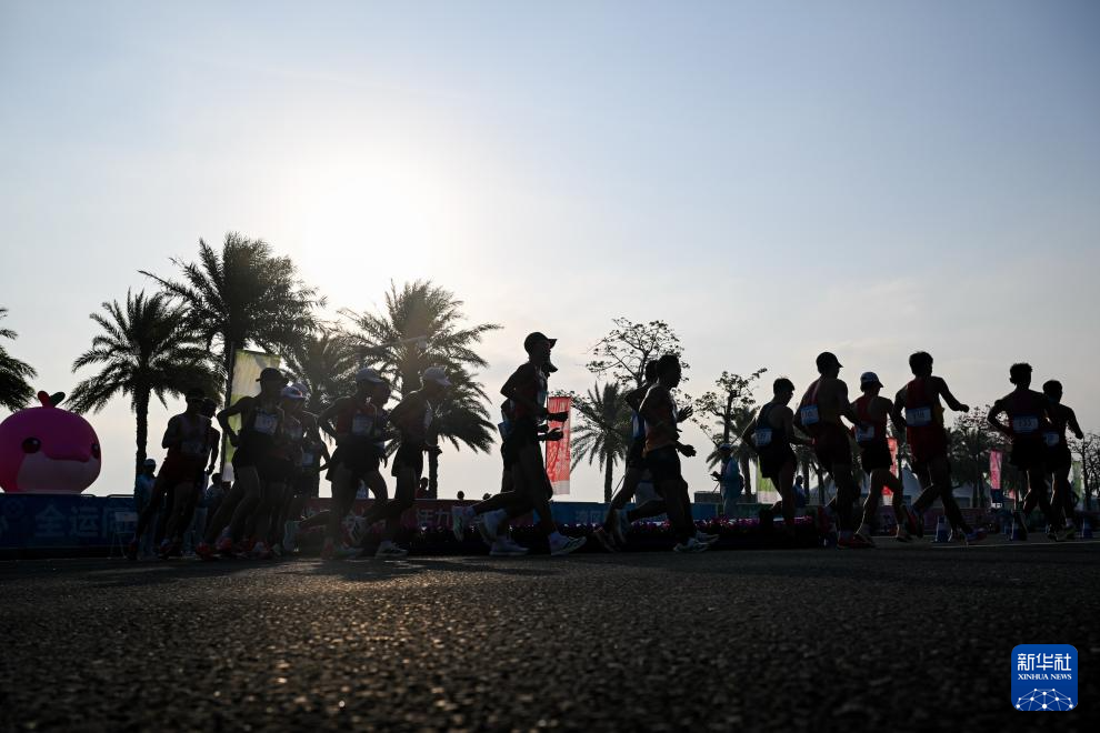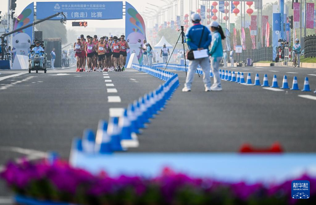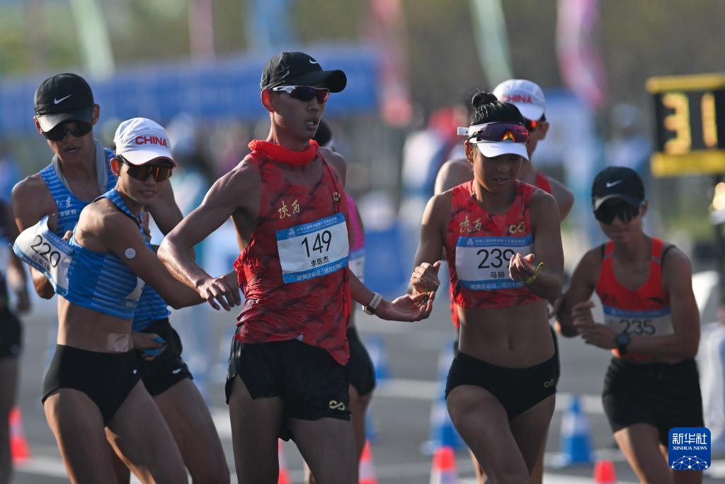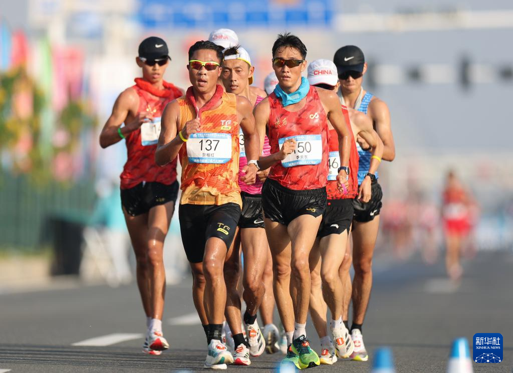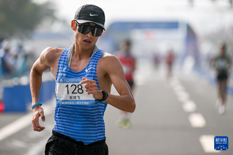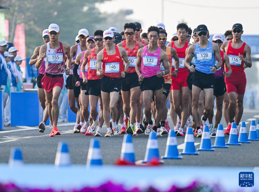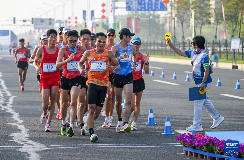 当日,第十五届全国运动会田径项目马拉松竞走混合接力决赛在广东珠海举行。