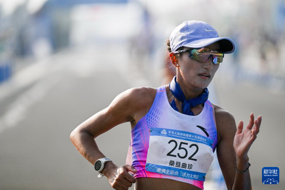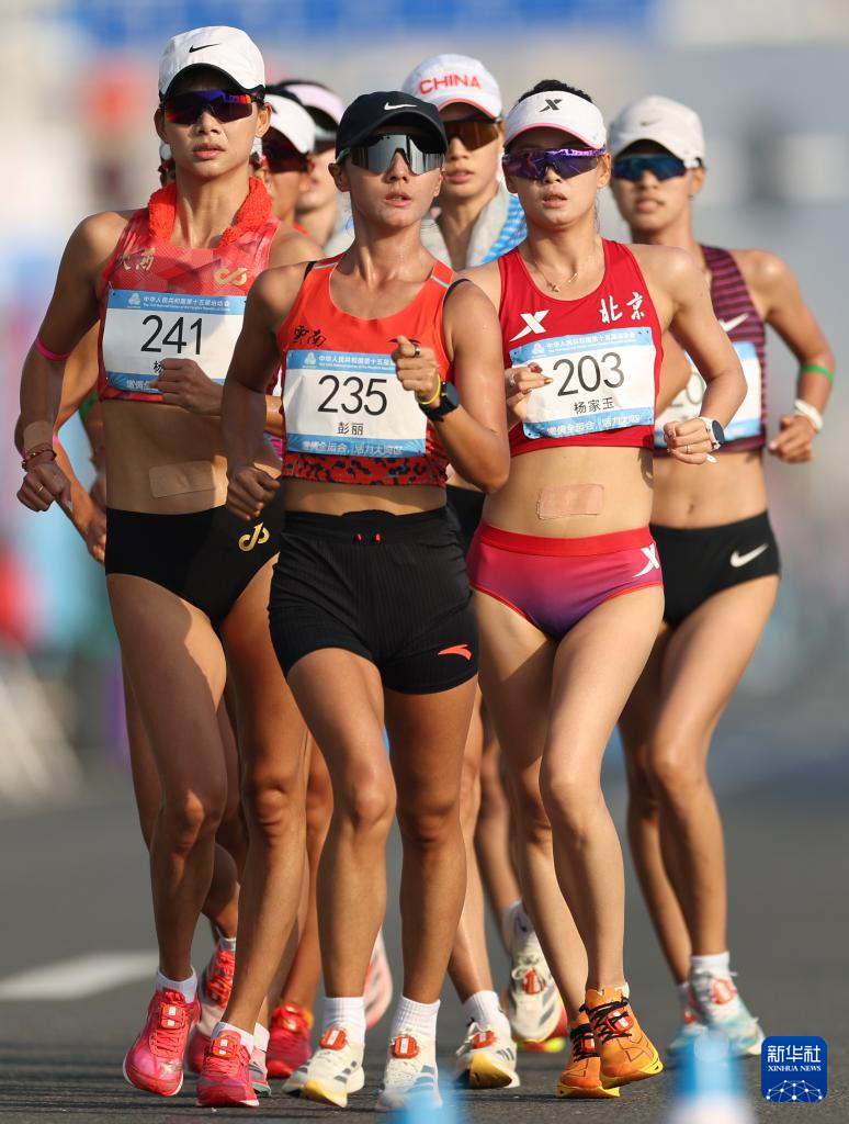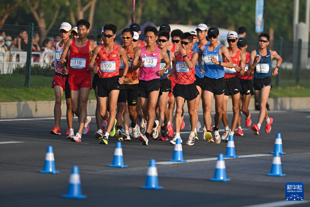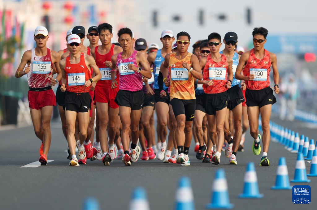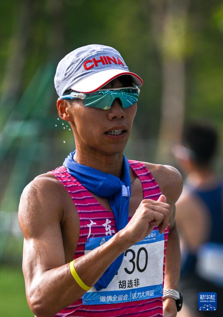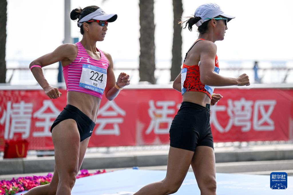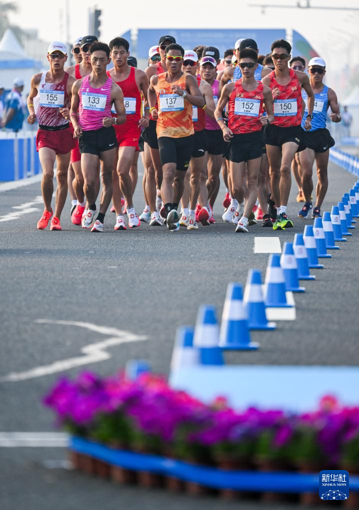 当日,第十五届全国运动会田径项目马拉松竞走混合接力决赛在广东珠海举行。