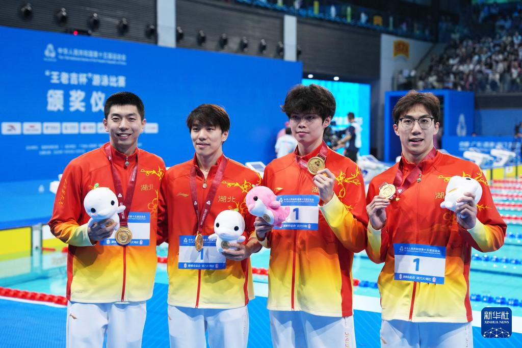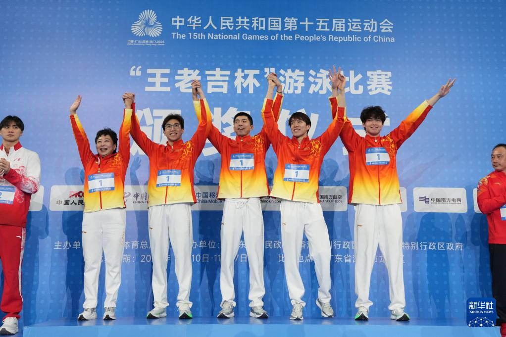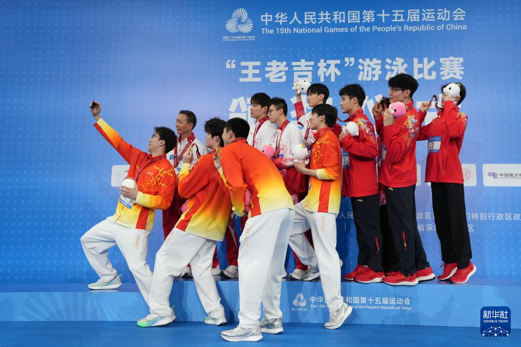 当日,第十五届全国运动会游泳男子4X100米混合泳接力决赛在广东省深圳市举行。