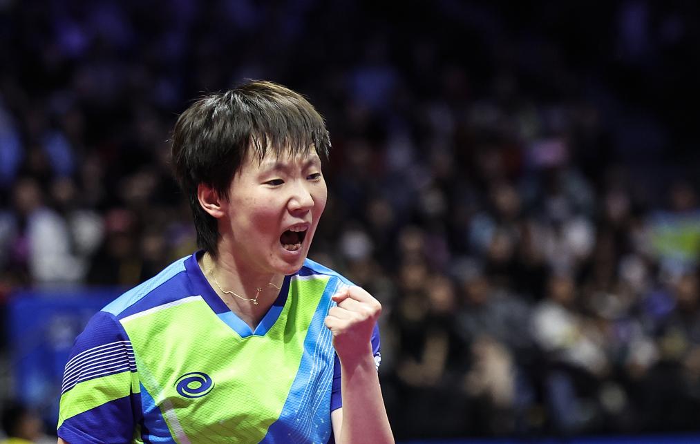 此时,孙颖莎先追一球,9:10。就在人们以为逆转好戏又要上演时,王曼昱果断叫下暂停。暂停归来,决定比赛走势的关键一球上演:孙颖莎发球,两人形成相持,王曼昱反手发力上台,兑现金牌点。