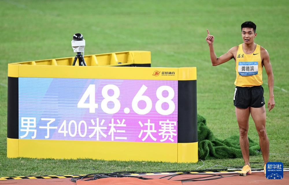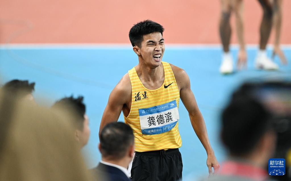 11月17日,福建队选手龚德滨在比赛后。他以48秒68的成绩夺得冠军并刷新全国纪录。