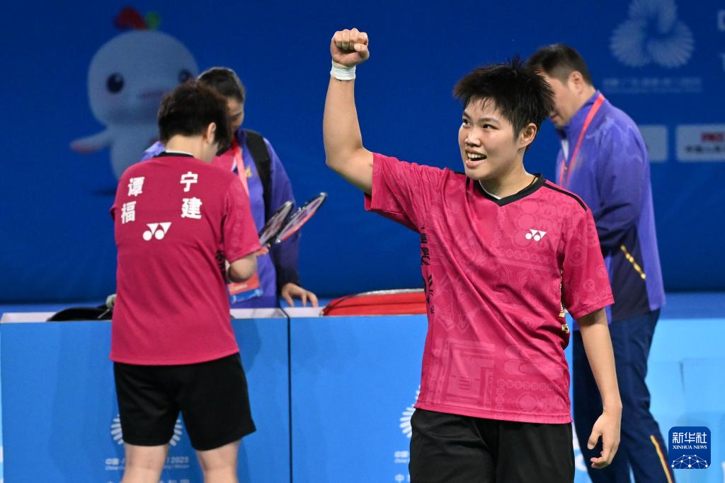 当日,在深圳进行的第十五届全国运动会羽毛球女子双打半决赛中,福建队组合黄东萍/谭宁2比0战胜湖南队组合贾一凡/张驰,晋级决赛。