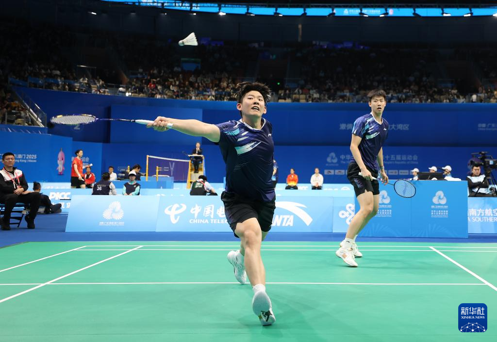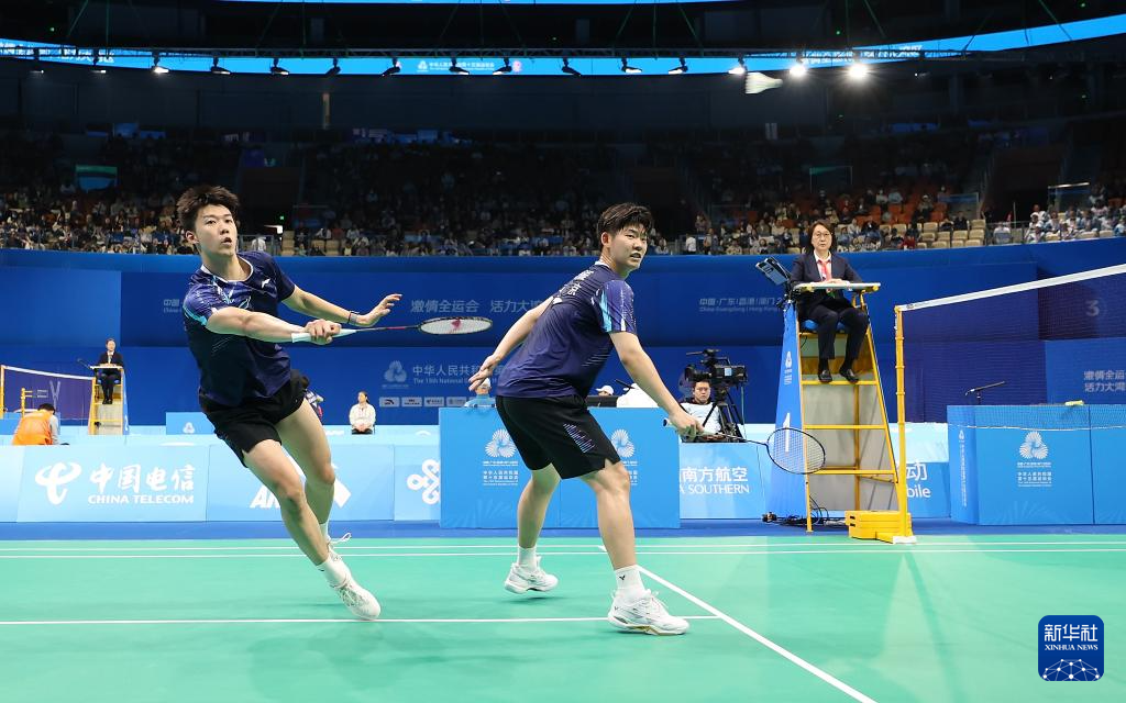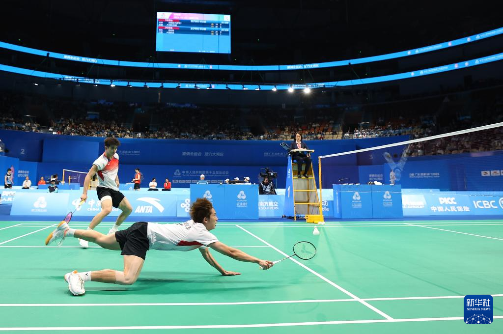 当日,第十五届全国运动会羽毛球男子双打半决赛在广东深圳举行。