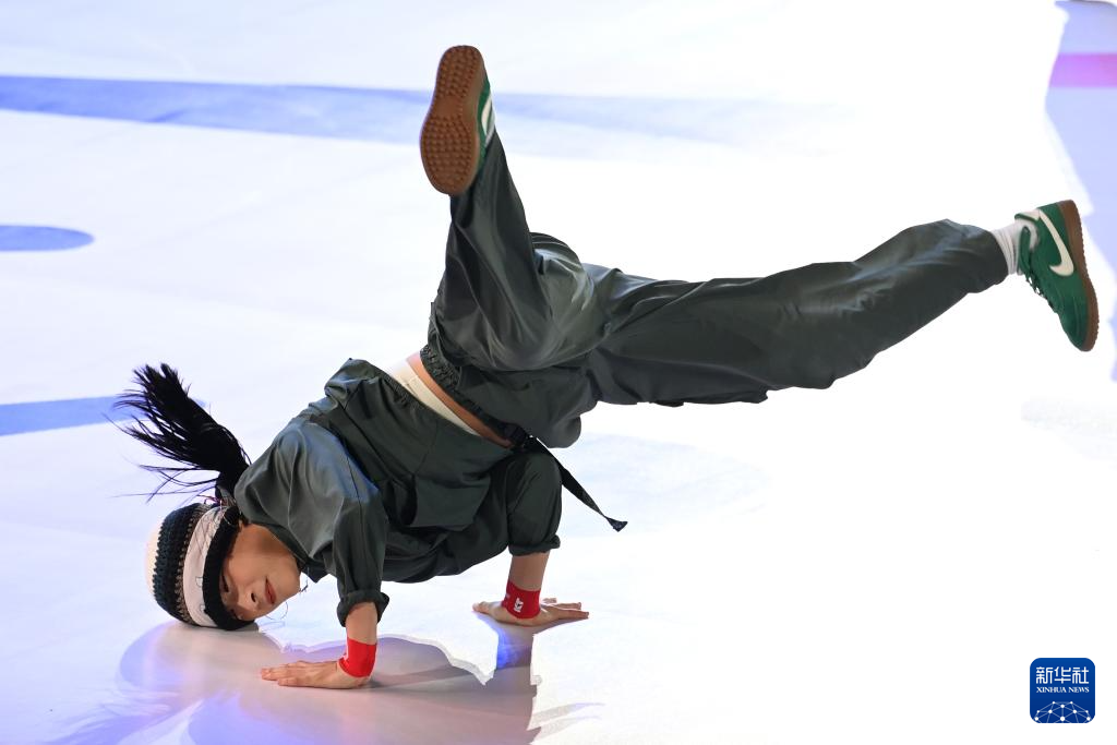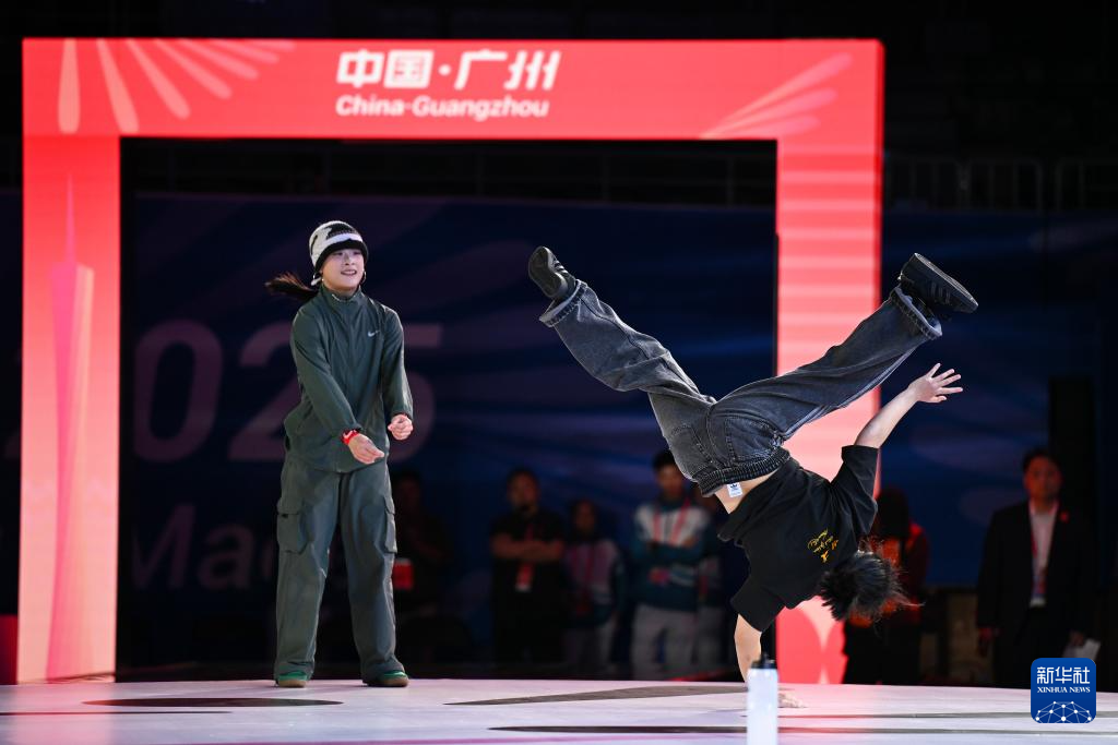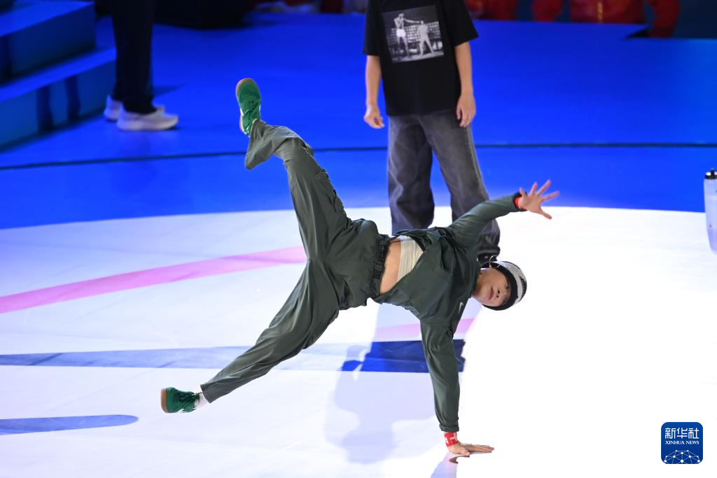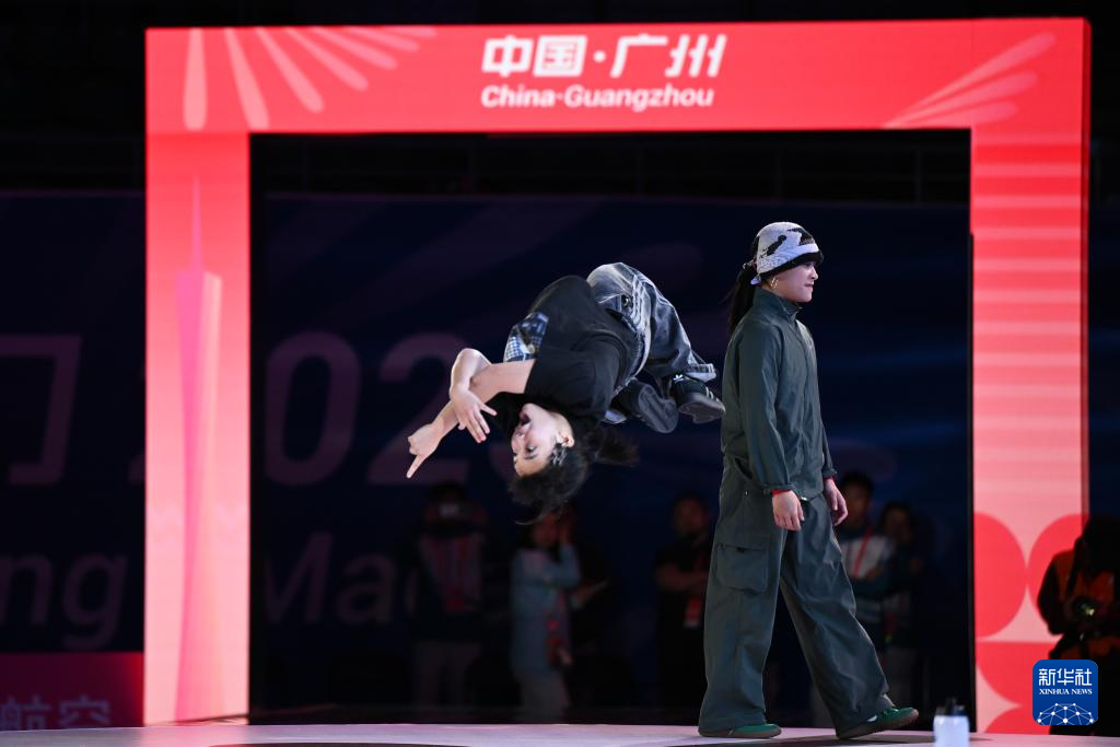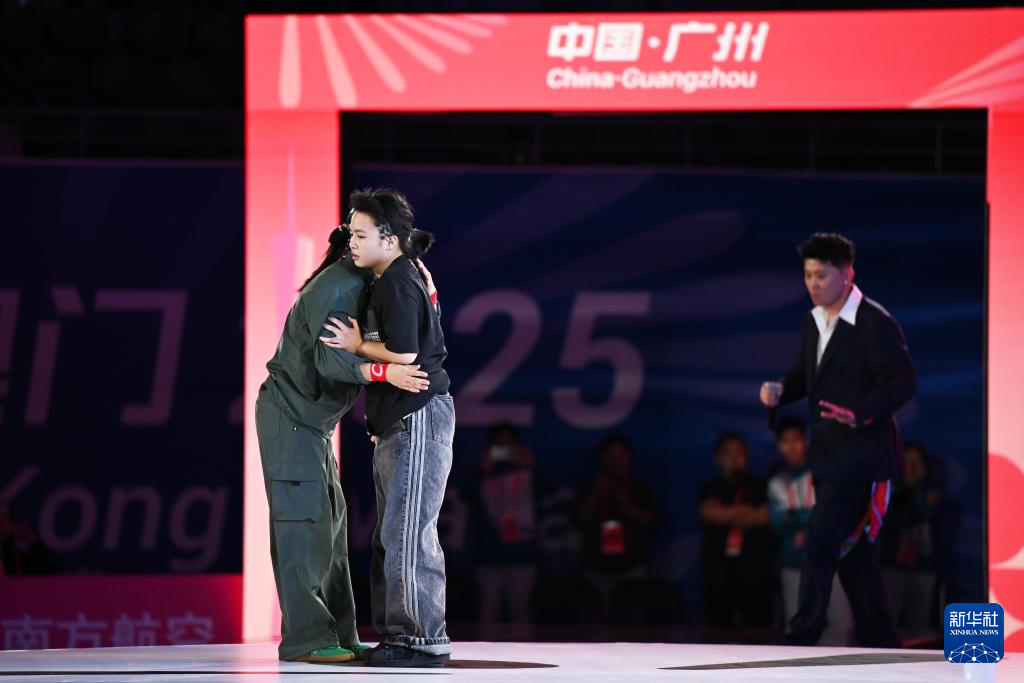 当日,在广州举行的第十五届全国运动会霹雳舞女子组金牌赛中,河南队选手刘清漪2比1战胜山东队选手郭朴,获得冠军。