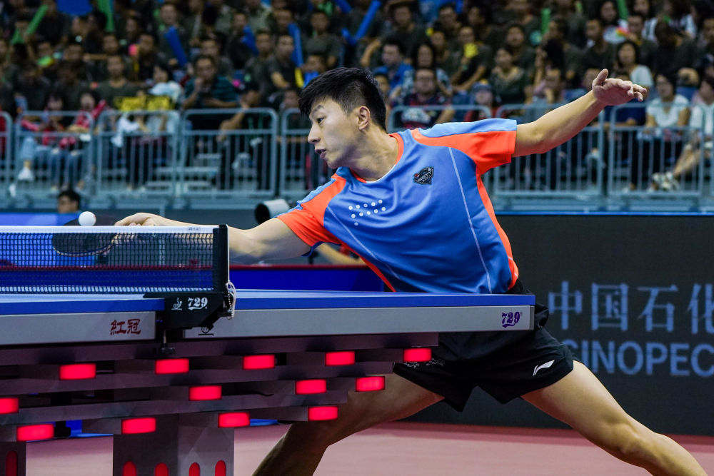 2024年2月25日,马龙在韩国釜山进行的2024年国际乒联釜山世界乒乓球团体锦标赛男子团体决赛中回球。最终,中国队3比0战胜法国队,获得冠军。新华社记者 姚琪琳 摄