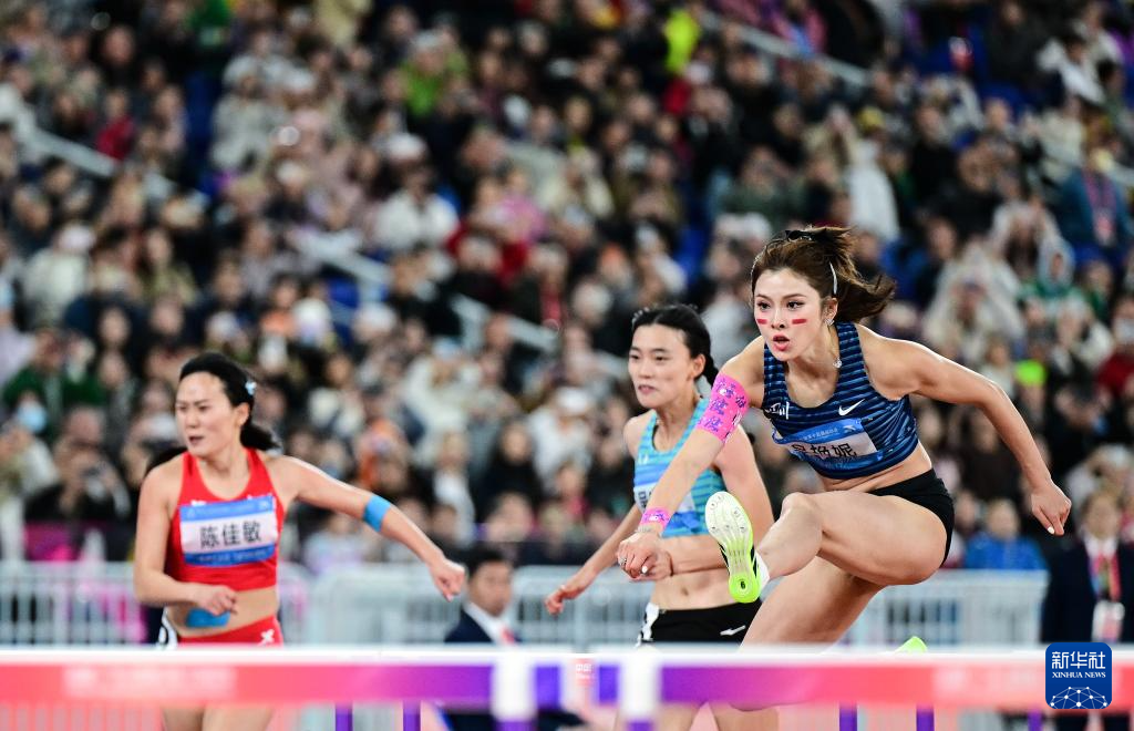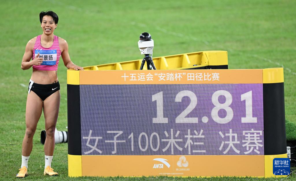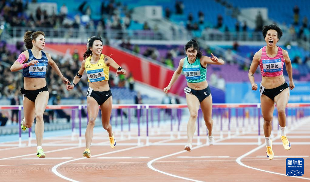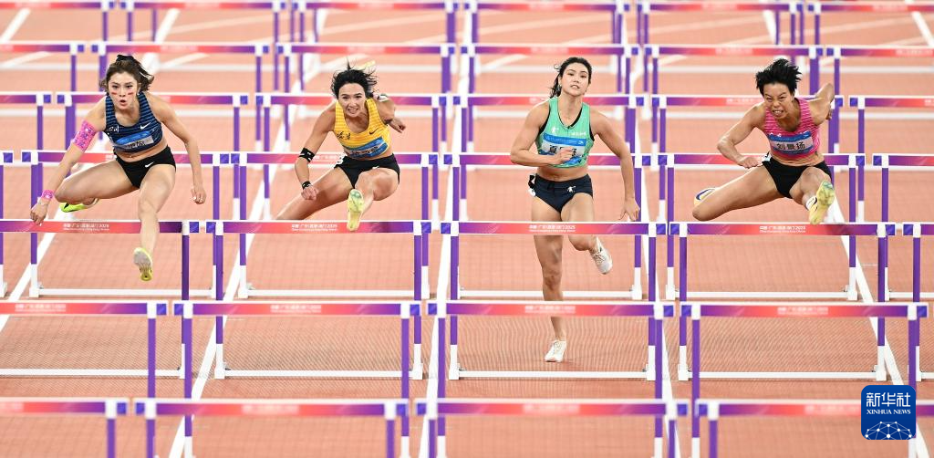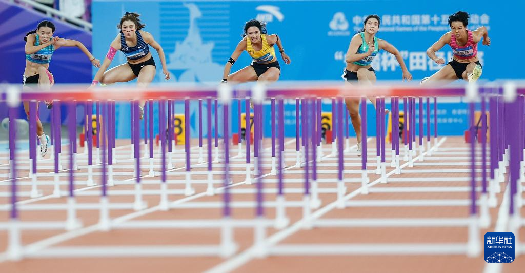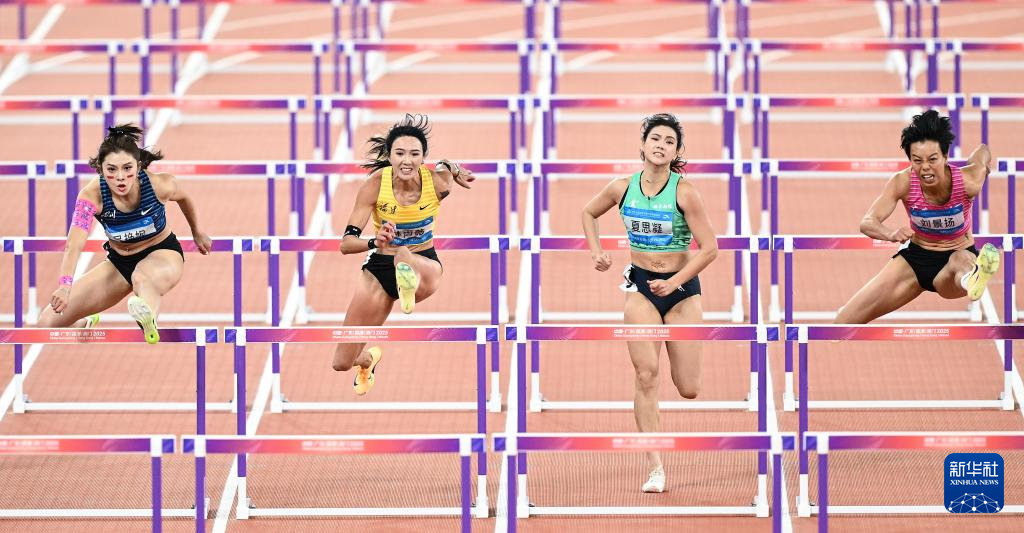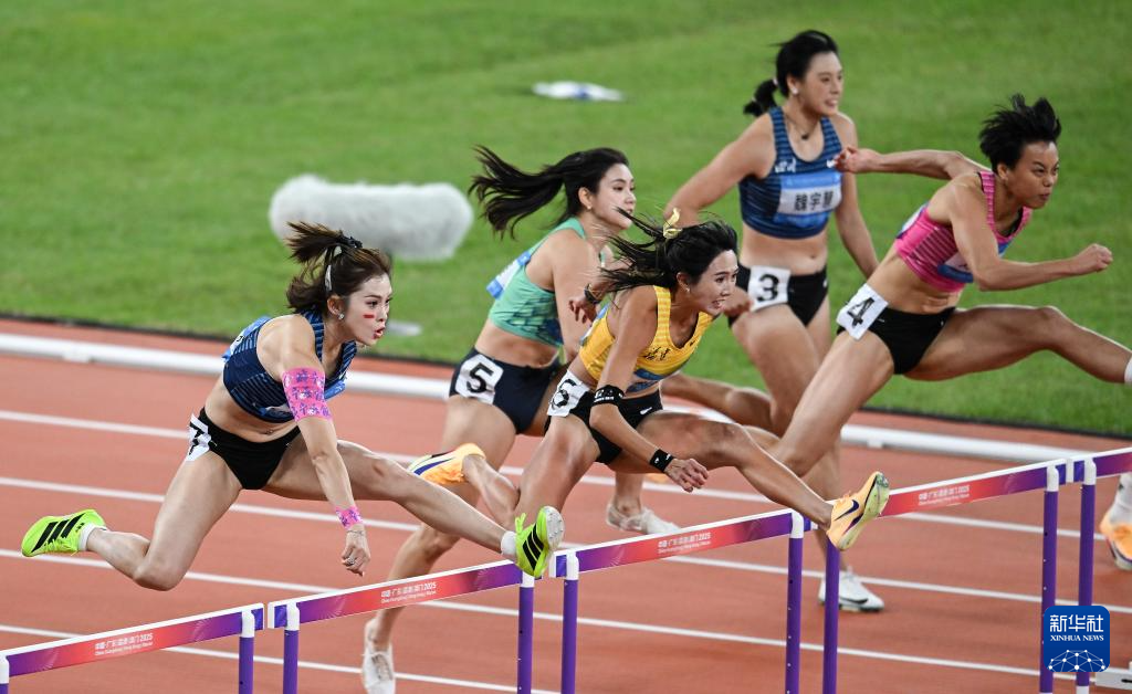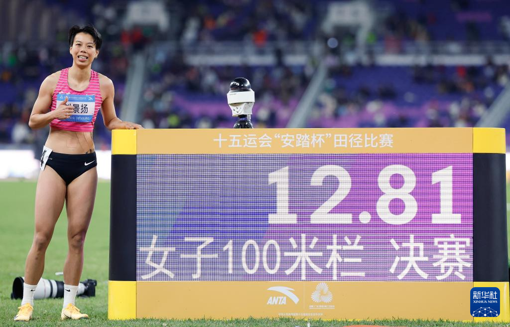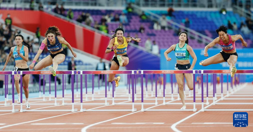当日,第十五届全国运动会田径项目女子100米栏决赛在广州举行。
