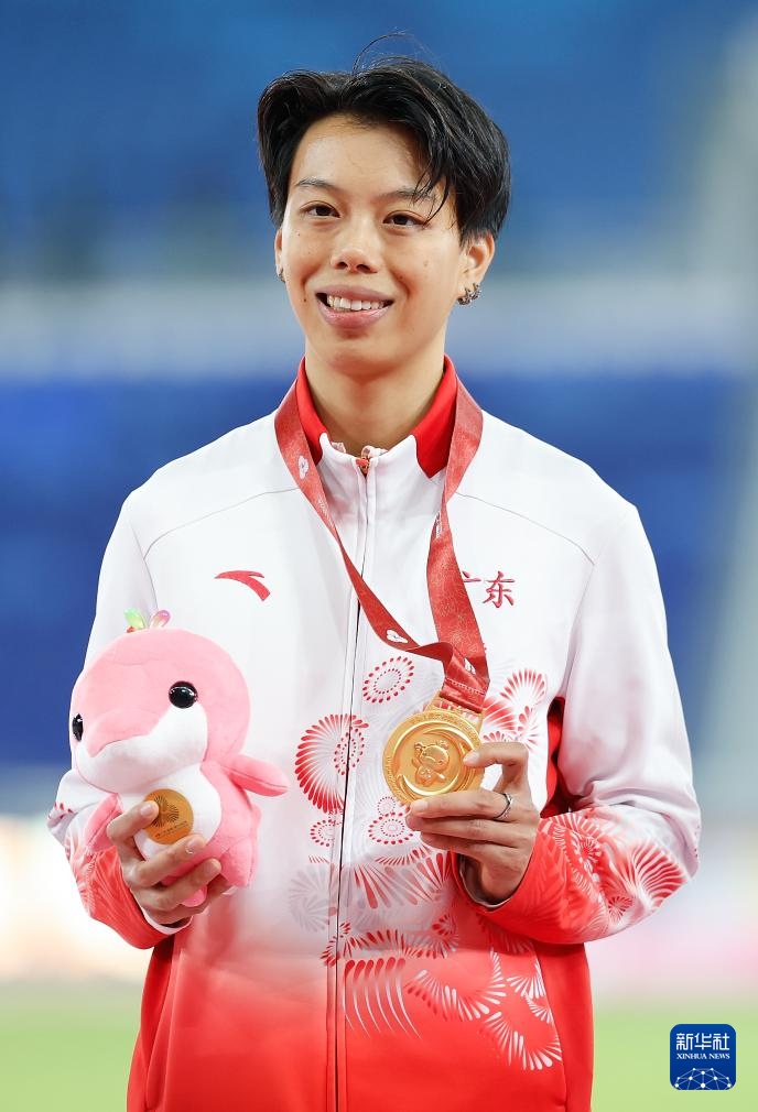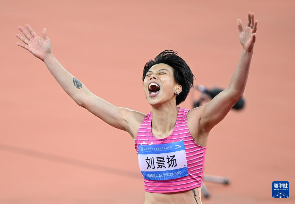 11月19日,广东队选手刘景扬在比赛后庆祝。她获得冠军。