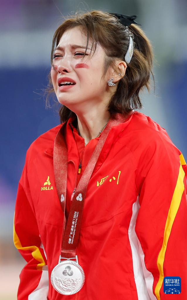 11月19日,获得亚军的四川队选手吴艳妮在颁奖仪式上哭泣。