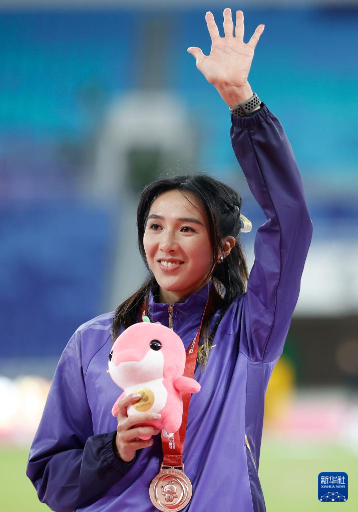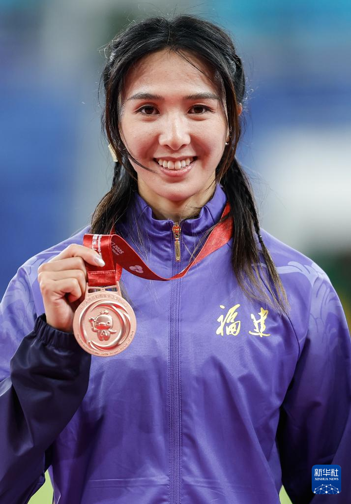 11月19日,获得季军的福建队选手林雨薇在颁奖仪式上。