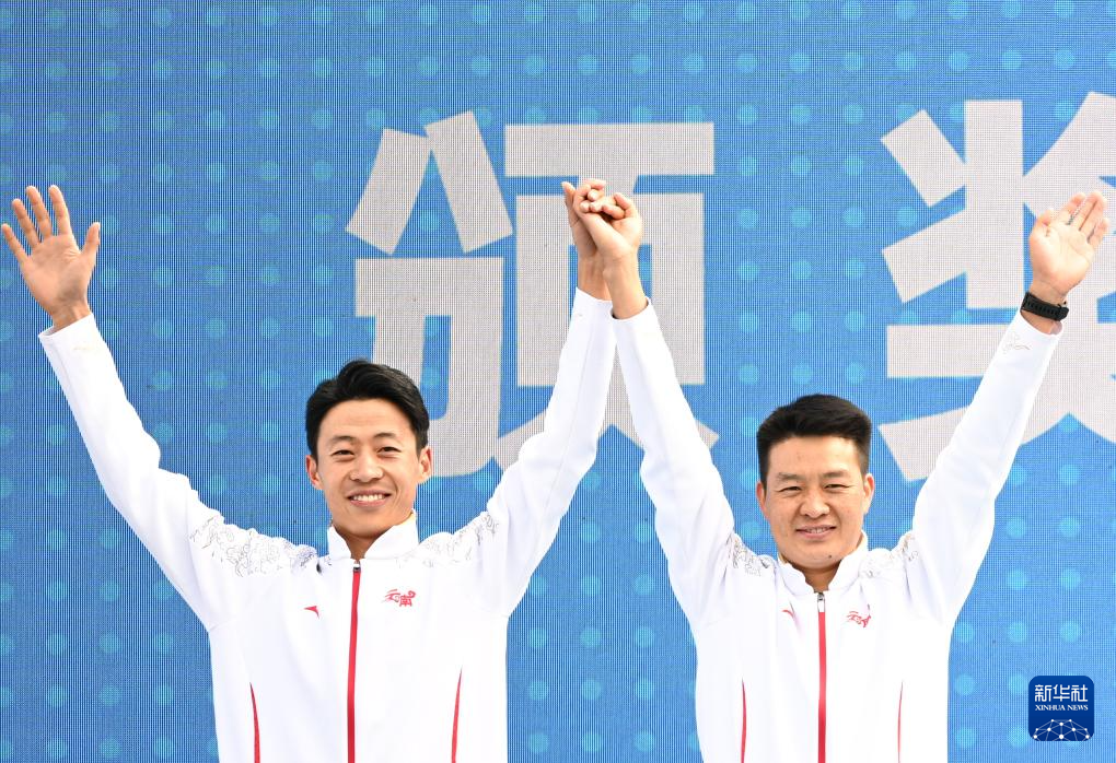 11月20日,亚军云南队选手袁金伟(左)和教练在颁奖仪式上。