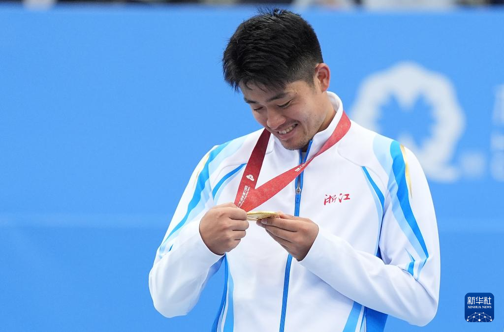 11月20日,获得冠军的浙江队选手吴易昺在颁奖仪式上。