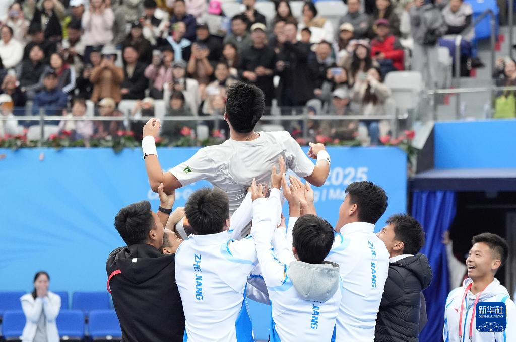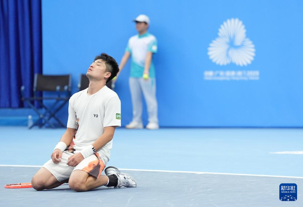当日,在广东横琴举行的第十五届全国运动会网球项目男子单打决赛中,浙江队选手吴易昺2比1战胜北京队选手商竣程,夺得冠军。