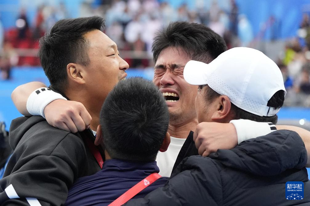 11月20日,浙江队选手吴易昺(左)在获胜后激动落泪。