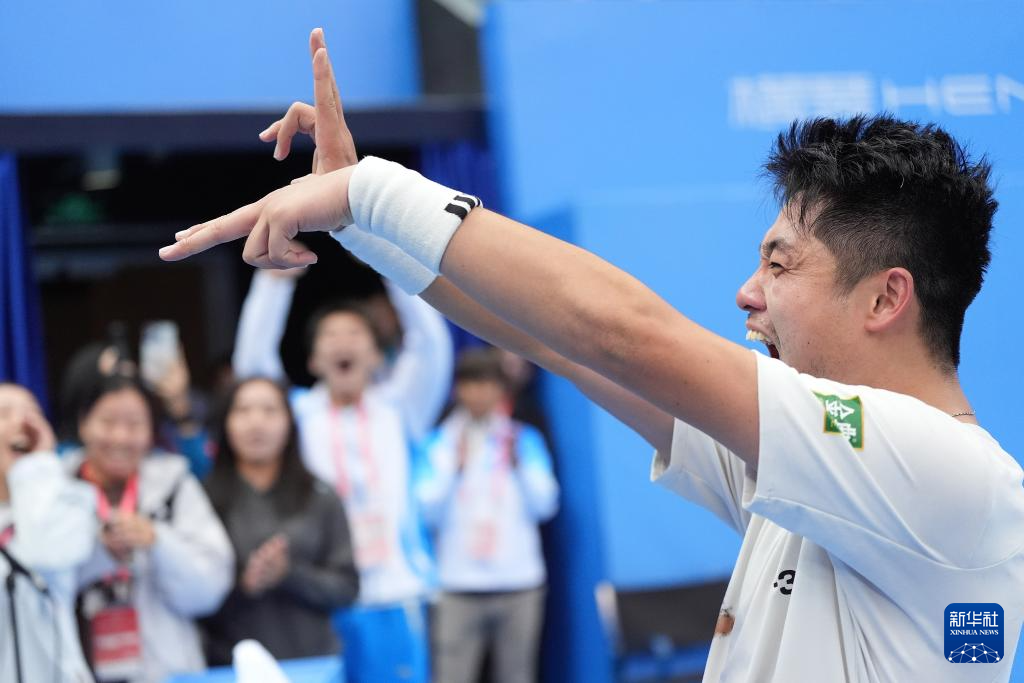 11月20日,浙江队选手吴易昺在比赛中庆祝。