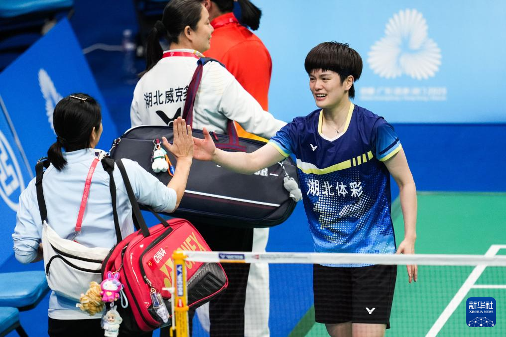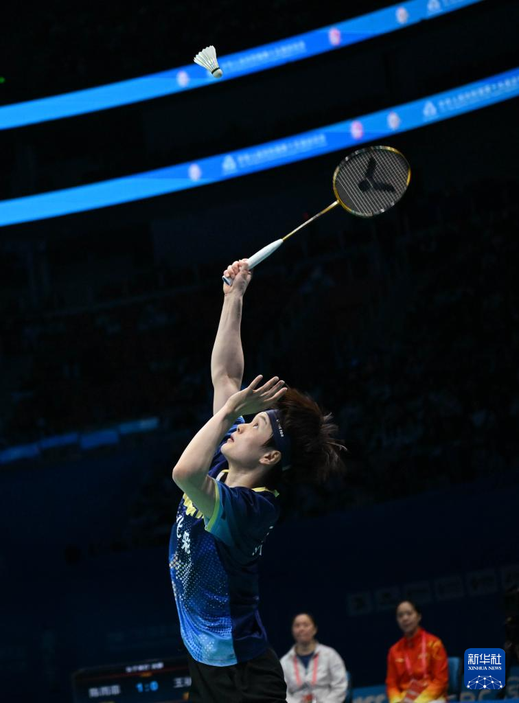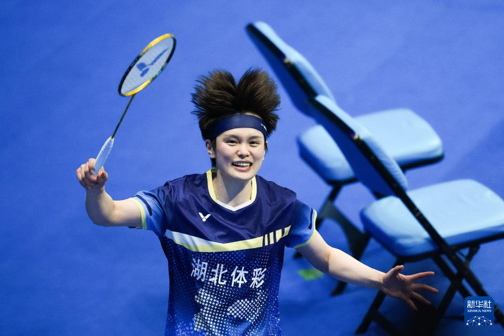 当日,在广东深圳举行的第十五届全国运动会羽毛球女子单打决赛中,湖北队选手王祉怡2比1战胜浙江队选手陈雨菲,获得冠军。