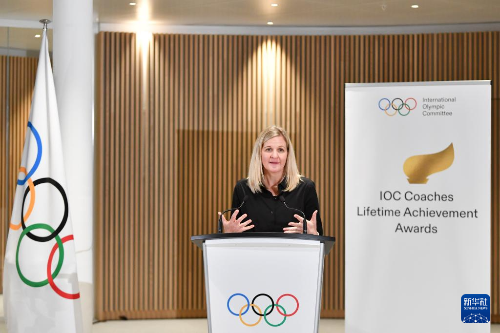11月24日,国际奥委会主席考文垂在2025年度国际奥委会教练员终身成就奖颁奖仪式上致辞。