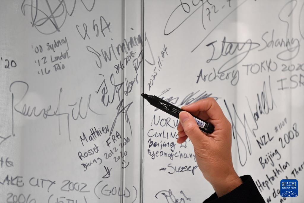 11月24日,郎平颁奖仪式后在签名墙上签名。