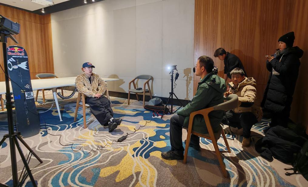 11月29日,苏翊鸣在夺冠后接受新华社记者专访