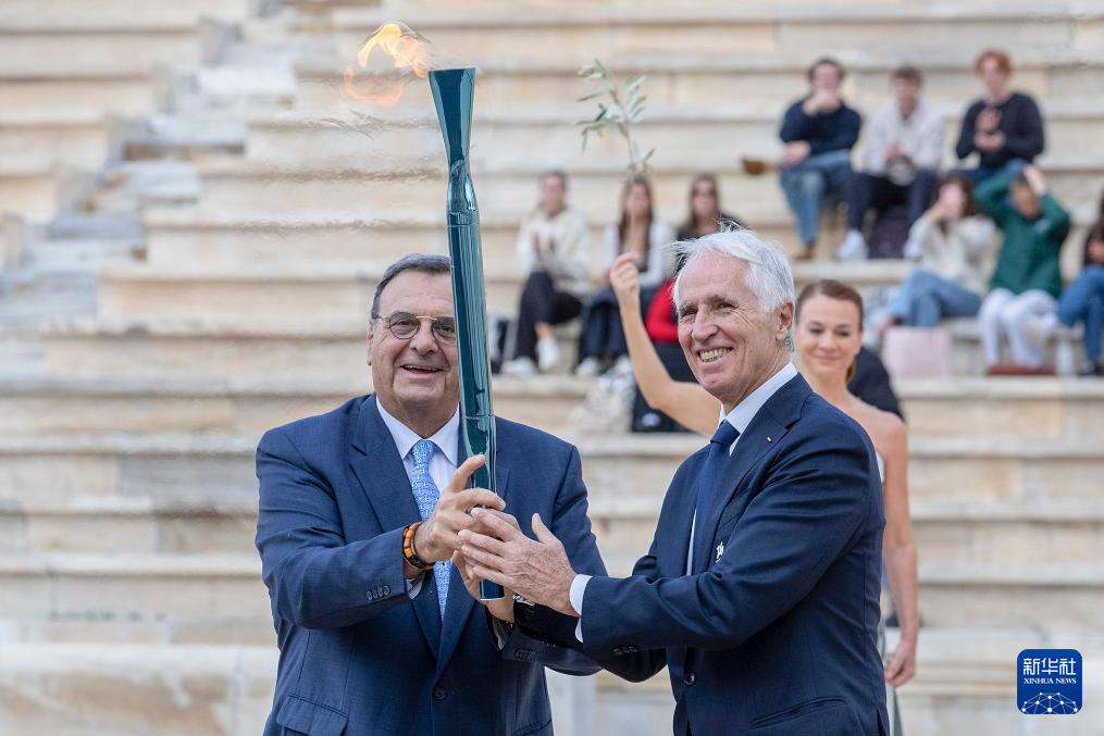 当日,2026年米兰-科尔蒂纳冬奥会圣火交接仪式在希腊雅典的泛雅典体育场举行。