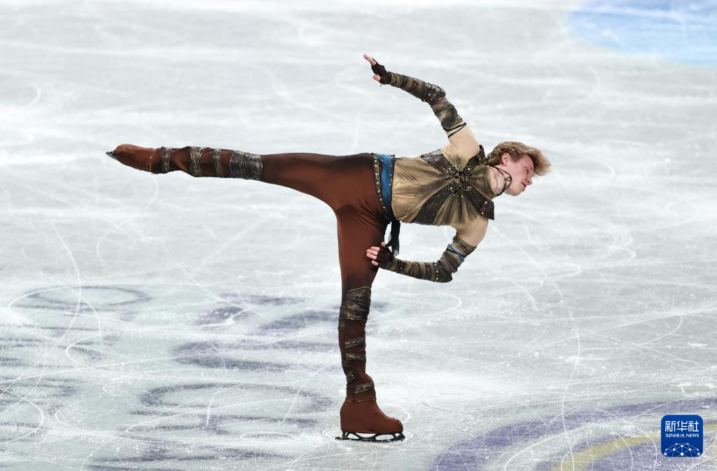 12月4日,美国选手马里宁在男子单人滑短节目比赛中。他以94.05分的成绩暂列第三。
