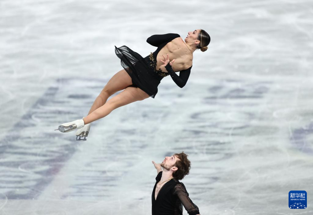 12月4日,意大利组合孔蒂(上)/马西在双人滑短节目比赛中。他们以77.22分的成绩暂列第二。