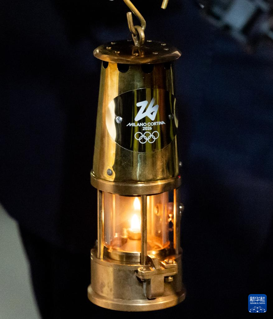这是12月4日在意大利罗马菲乌米奇诺机场拍摄的火种灯。