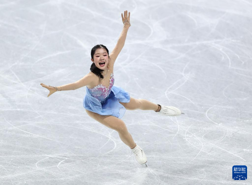 12月6日,美国选手刘美贤在女子单人滑自由滑比赛中。她以222.49分的成绩夺得女子单人滑金牌。