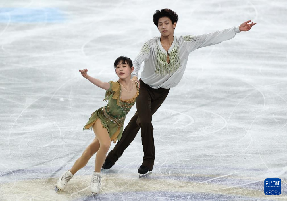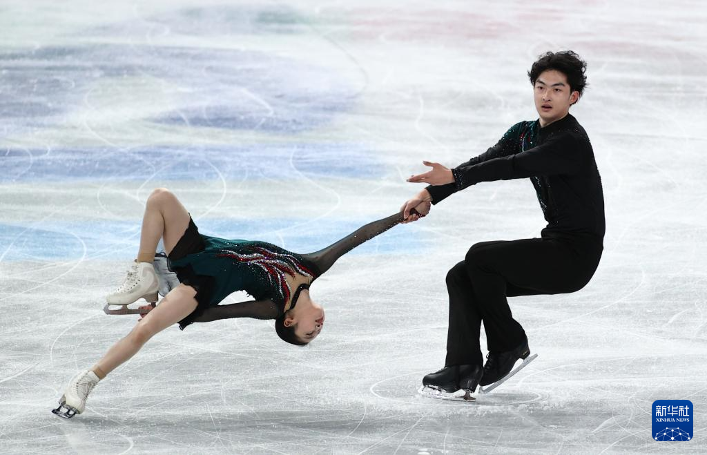 12月6日,中国组合张轩绮(左)/丰闻强在青年组双人滑自由滑比赛中。他们以171.57分的成绩获得银牌。