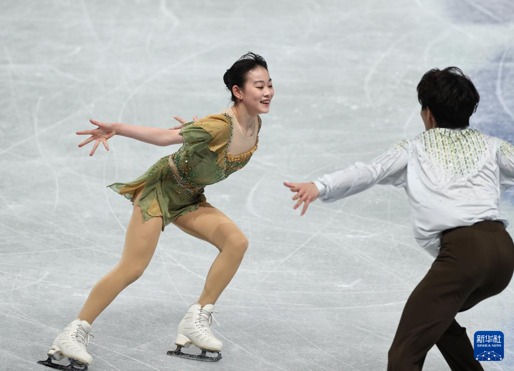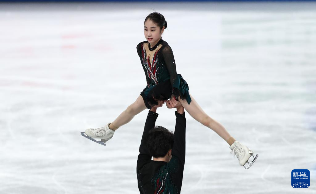 12月6日,中国组合郭蕊(左)/张益文在青年组双人滑自由滑比赛中。他们以177.05分的成绩夺得青年组双人滑金牌。