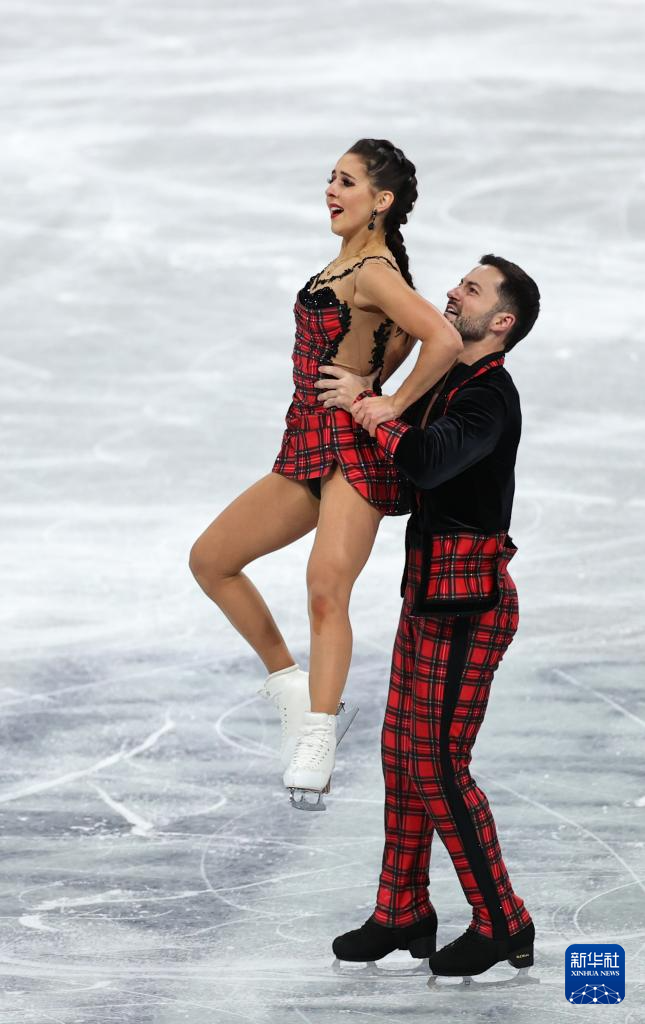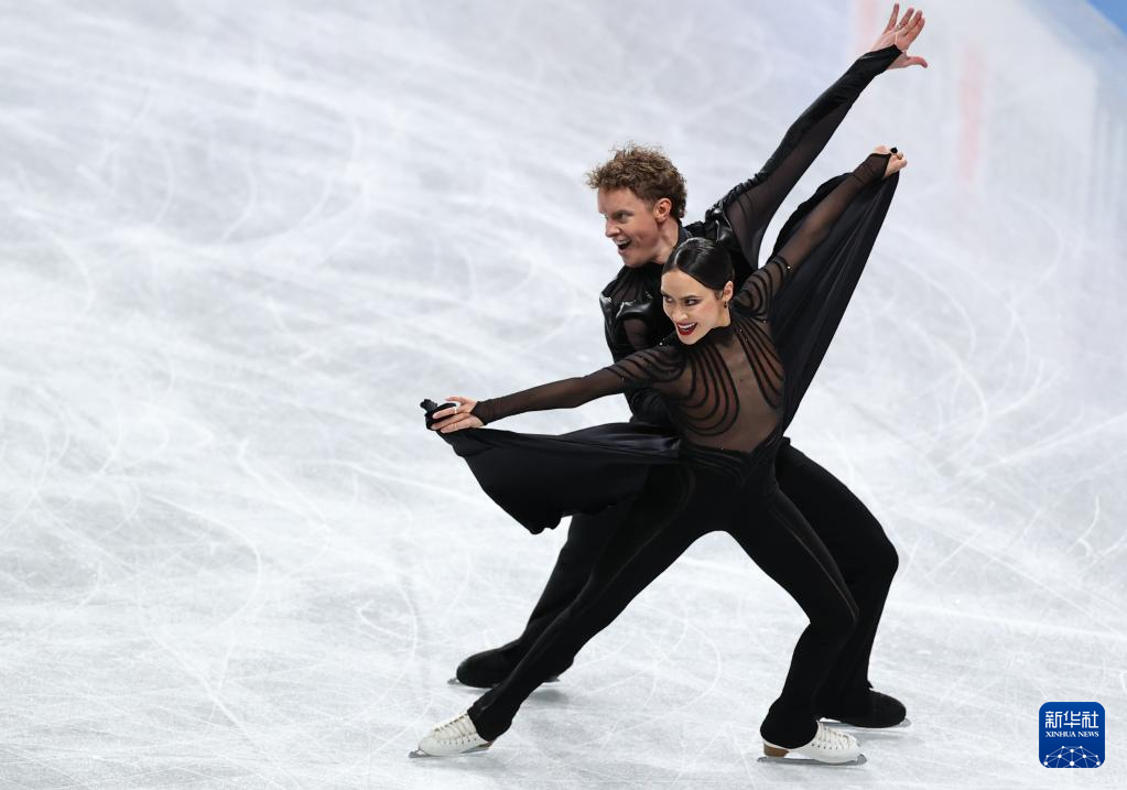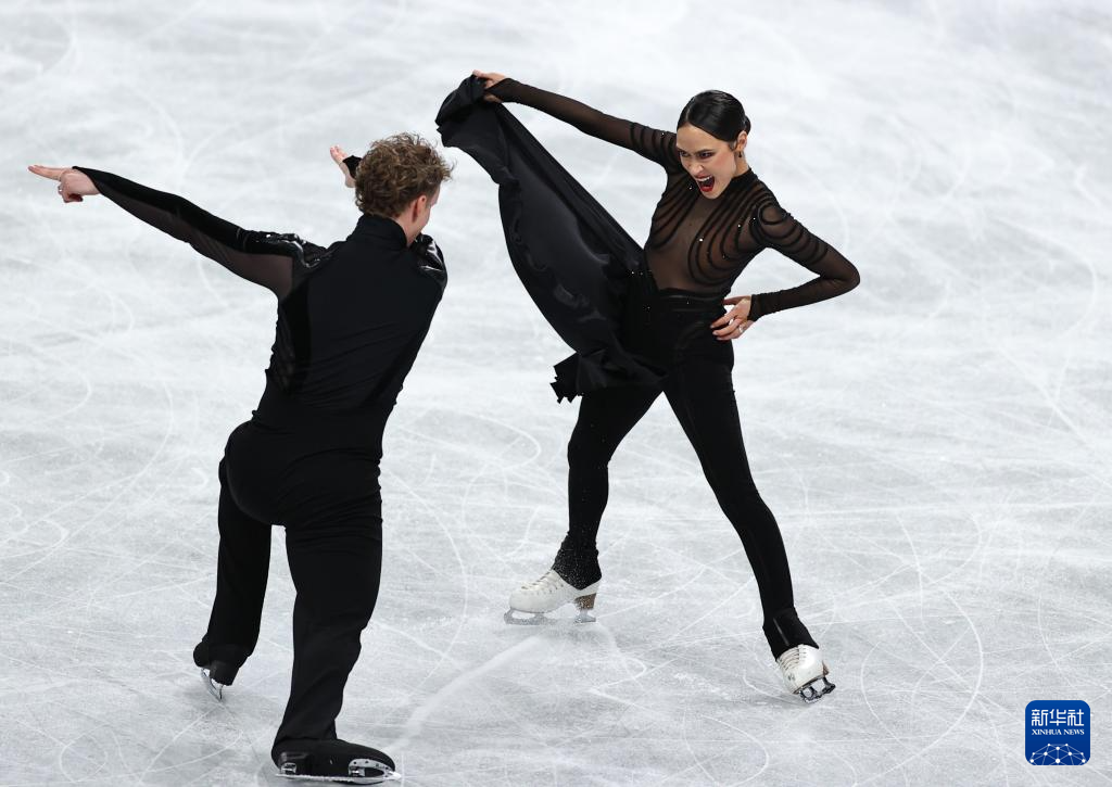 12月6日,美国组合乔克(前)/贝茨在冰舞自由舞比赛中。他们以220.42分的成绩夺得冰舞金牌。