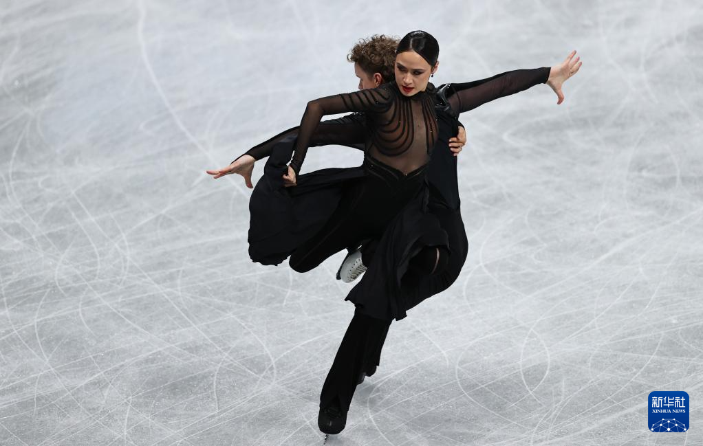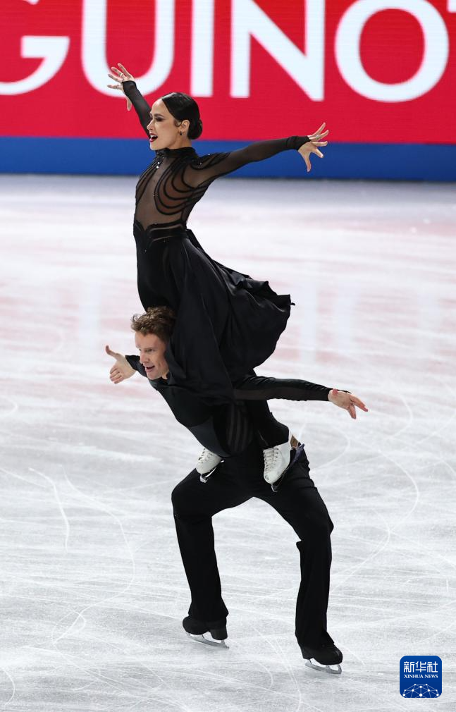 12月6日,法国组合富尼耶·博德里(右)/西泽龙在冰舞自由舞比赛中。他们以214.25分的成绩获得得冰舞银牌。