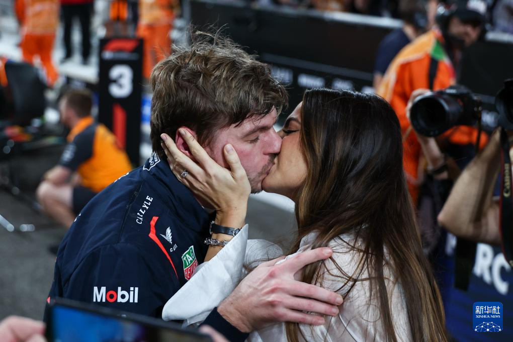 12月6日,红牛车队荷兰车手维斯塔潘赛后与女友凯利·皮奎特亲吻。