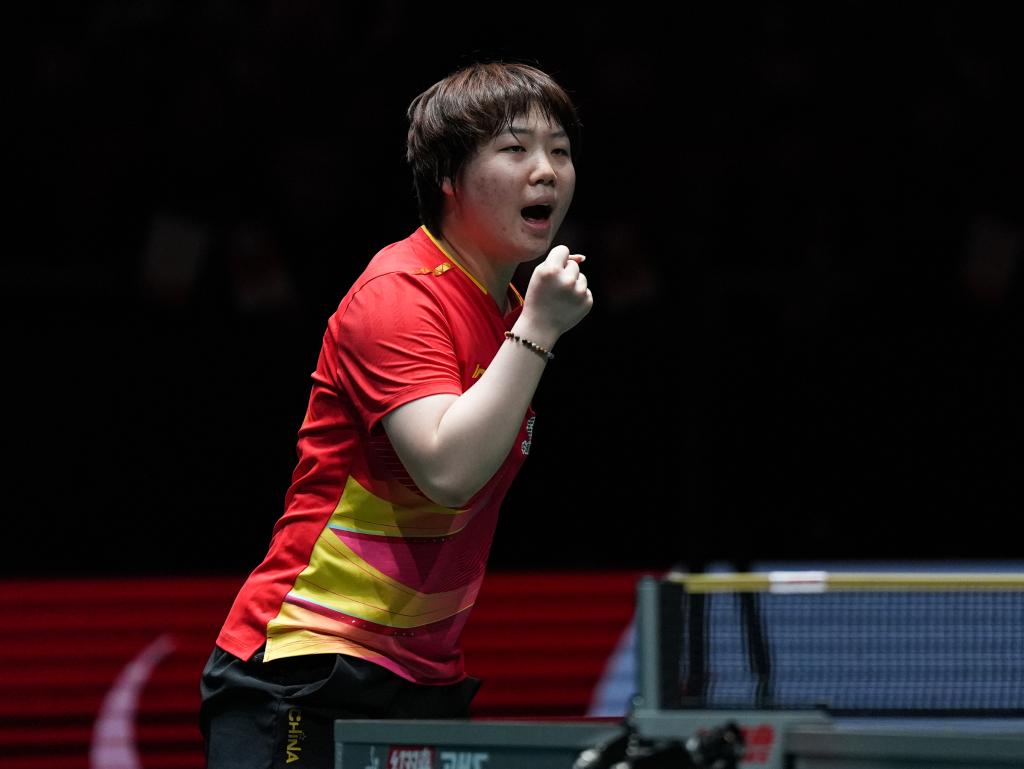 20岁的林诗栋作为团队中年龄最小的队员,在决赛的男单比赛中以2:1战胜张本智和,为团队锁定最后的一分。在本届赛事中,他也打满三个位置。