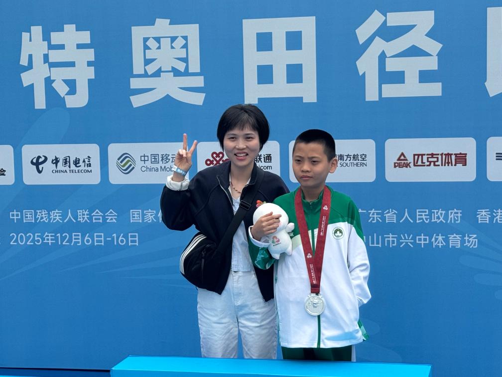 新华社中山12月10日电(记者杨博毅、曹祎铭)在全国第十二届残疾人运动会暨第九届特殊奥林匹克运动会的领奖台上,10岁的澳门小将王德康稚嫩的脸庞上带着腼腆的笑容,双手紧紧攥着那枚来之不易的垒球项目银牌。