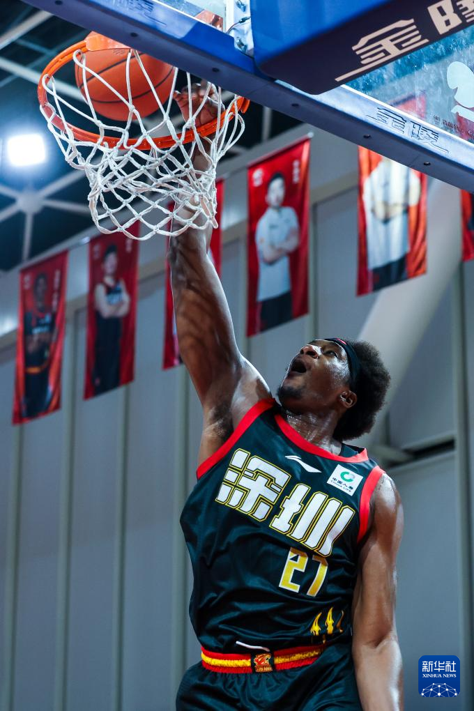 12月24日,深圳马可波罗队球员卡巴在比赛中扣篮。