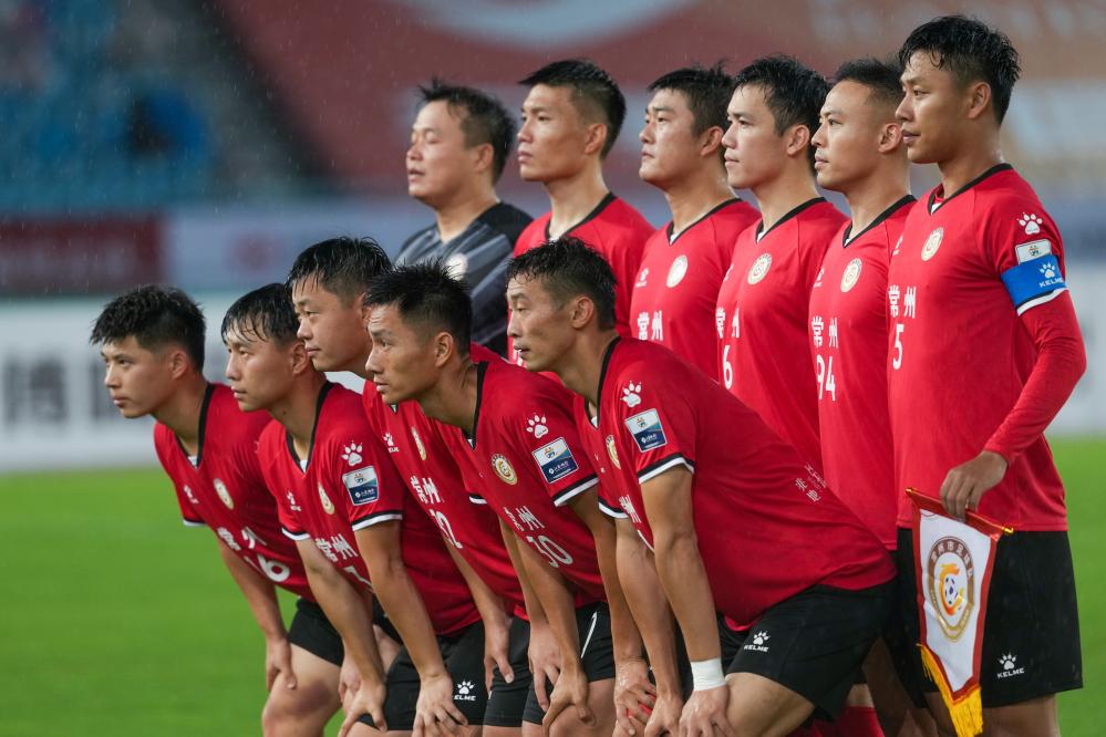 6月21日,常州队在“苏超”第五轮对阵南京队的比赛前合影。最终,常州队主场0:4不敌南京队。新华社记者 李博 摄