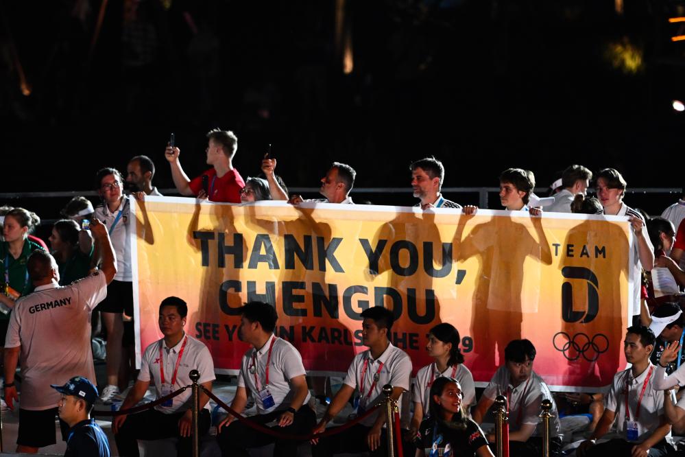 8月17日,第12届世界运动会闭幕式现场拍摄的“感谢成都”条幅。新华社记者 冯开华 摄